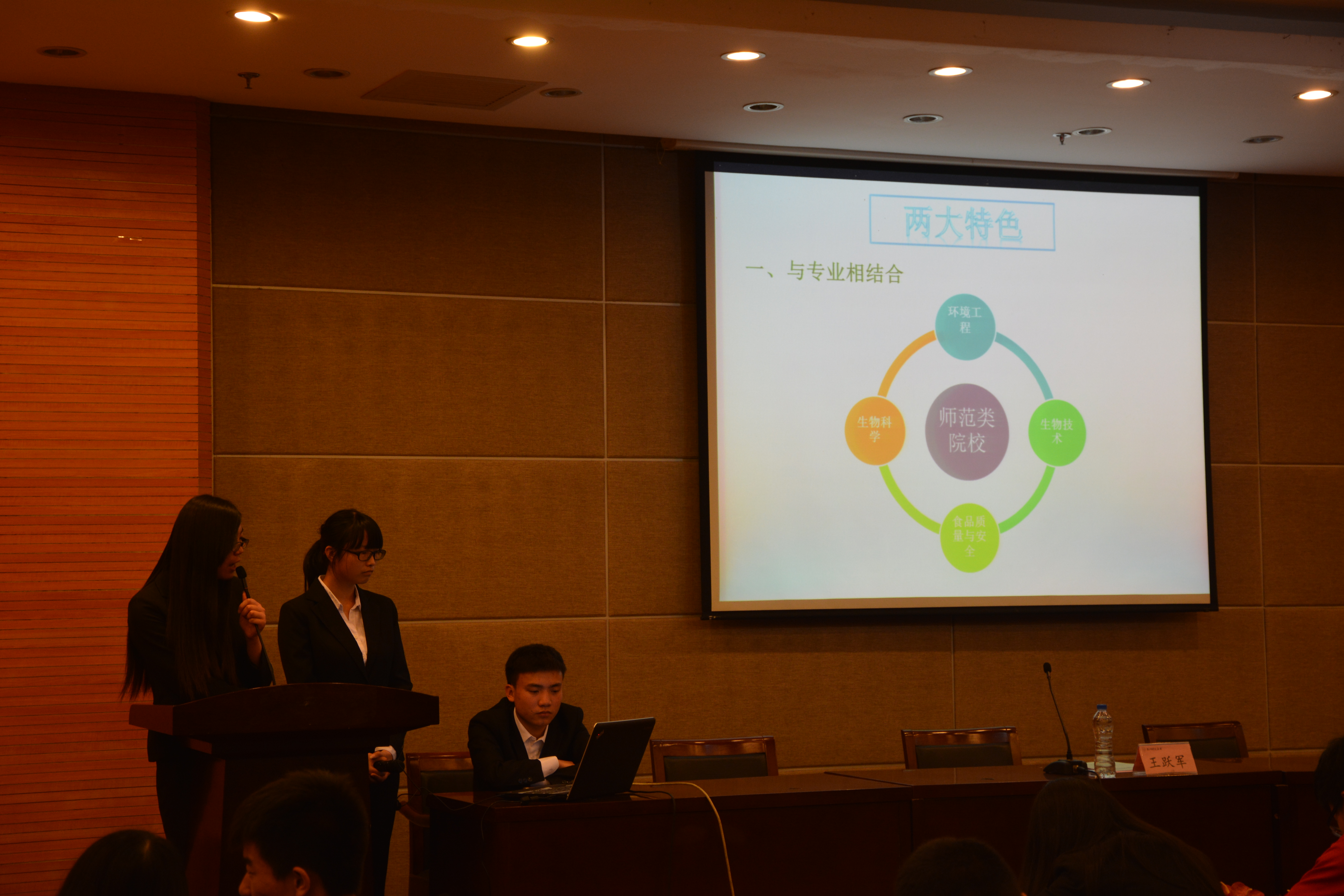 下午1点,各大高校和社会公益组织展示了其精品公益项目。国产a片 作为第四个上台展示的学院,以两位代表打擂台的形式,赢得了现场与会人员的热烈掌声。两位代表从项目背景、项目内容、项目特色及项目成效四个方面全方位的展示了环境教育及浙江自然博物馆解说队的情况。在接下来的小组讨论中,国产a片 代表们积极参与其中,与其他的组织进行了深入的交流。晚上8点,本届峰会以下届华东峰会的承办权竞选以及交接工作胜利闭幕。