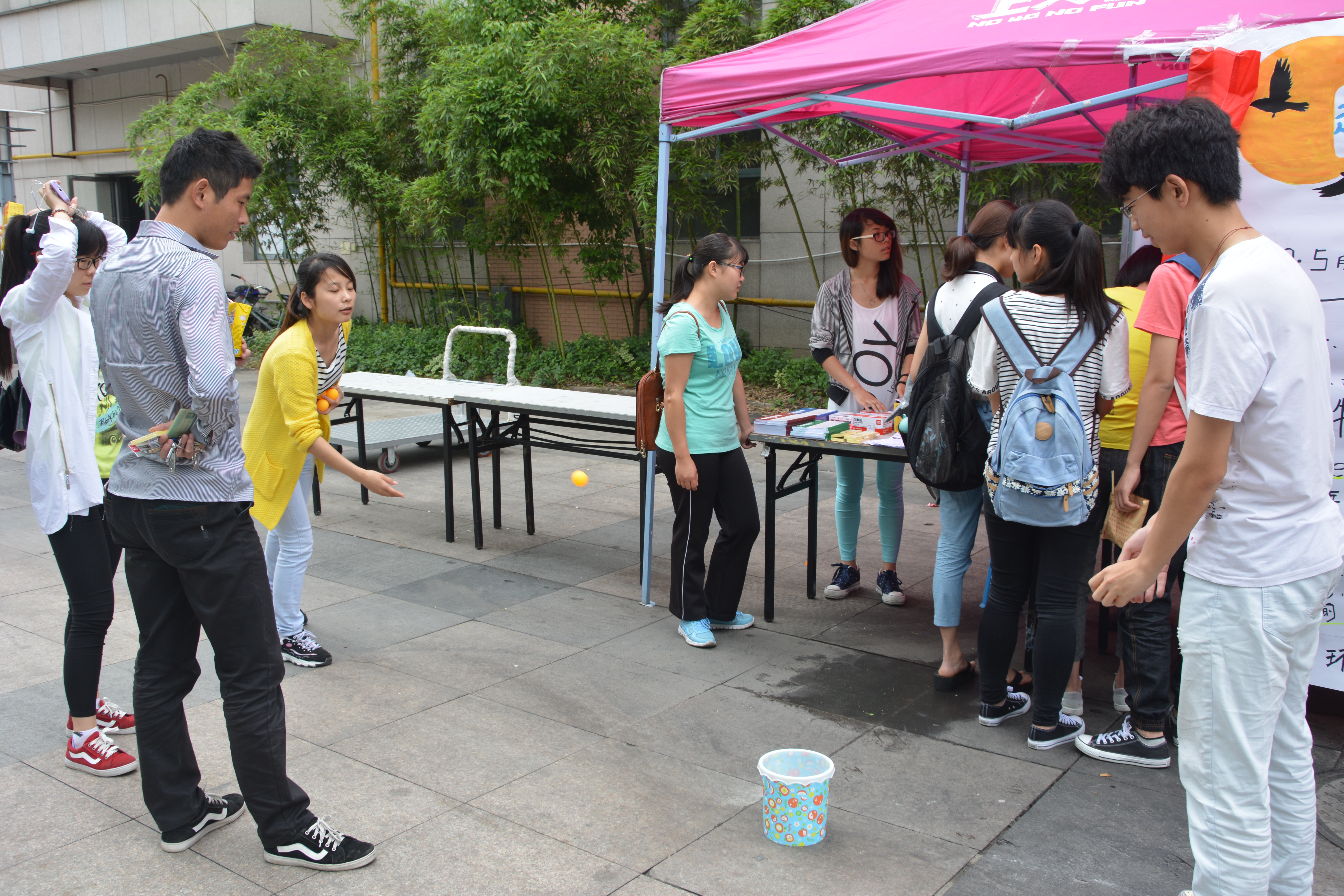 5月13日和5月14日中午,由生命与环境科学学院“绿之翼”环保协会、B.D.服务社、野百合艺术团、贝斯特乒乓球协会和“生命源”青年志愿者协会五大社团联合举办的社团巡展在二期广场举办。