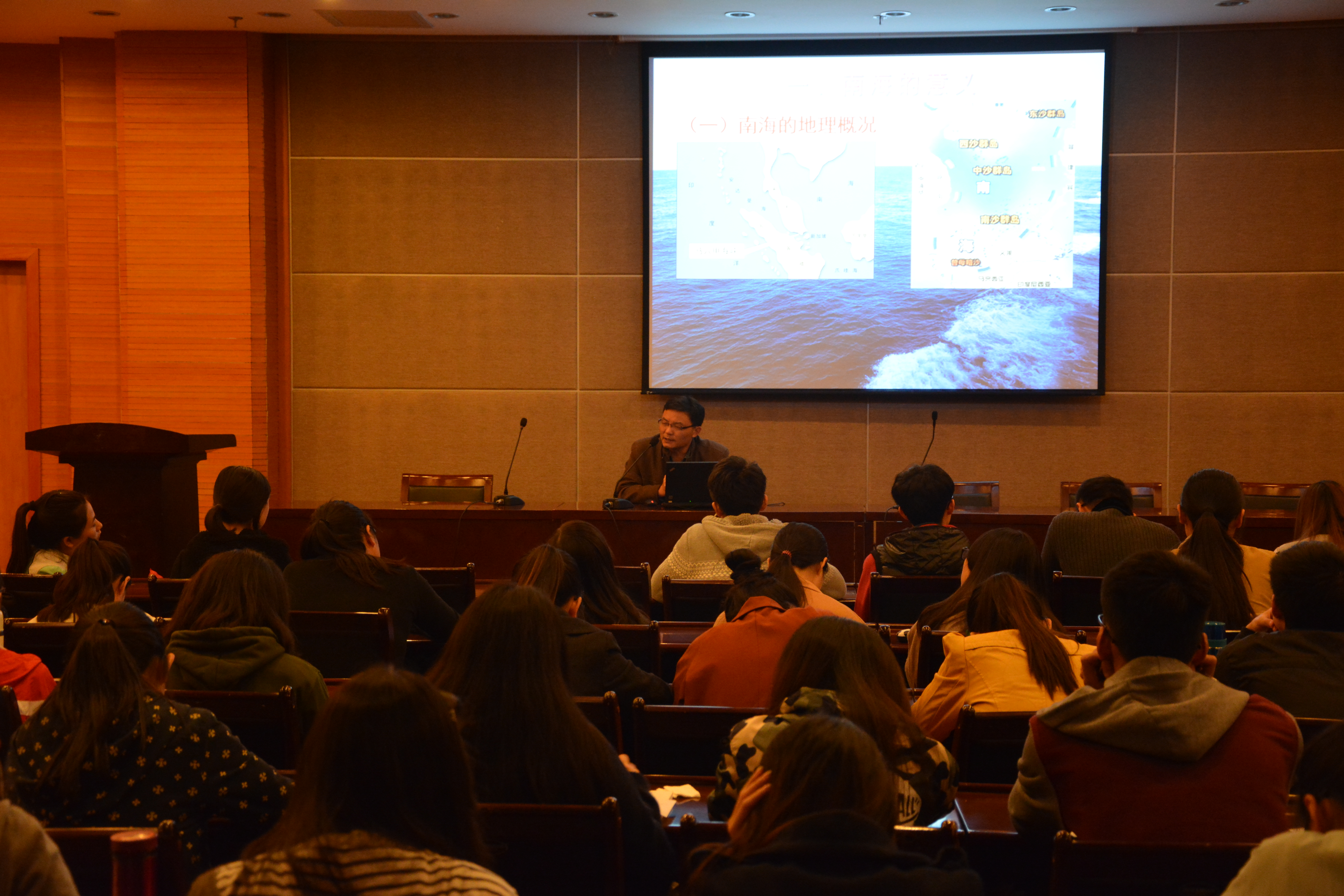 11月18日下午1点30分,关于南海问题的由来与现状的讲座在叙伦厅展开,来自国产a片 政治与社会学院的赵定东教授作为此次讲座的主讲人,给师生们带来了一场精彩的视听盛宴。