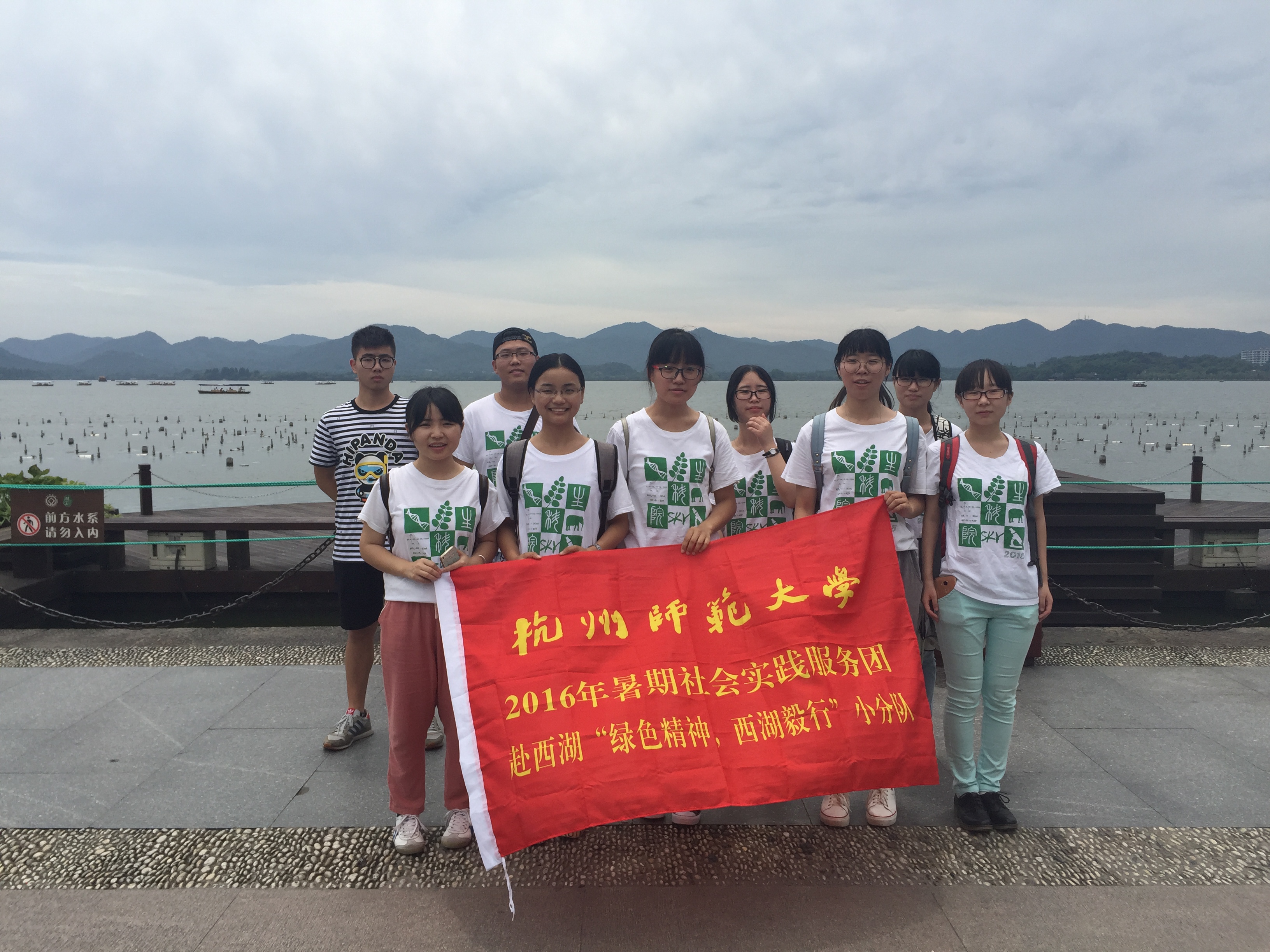每位队员都分到一些环保书签,在通往西湖的路口以及景点内分发。队员们在经历了前几日的历练和尝试以后,都多了几分勇气和淡定。队员们都可以微笑有礼貌的询问走过的游客,是否愿意花一分钟的时间来听讲关于环保的知识以及是否愿意接受赠送的环保书签。游客们大多也礼貌亲切,愿意停下脚步和我们队员交流,并且都欣然接受我们的环保书签。队员们也不会耽误游客太长时间,简略的介绍一下我们此行的目的,并传授一点环保小知识,比如垃圾的大致分类,废旧电池的回收利用等等。更有队员将剩下的一些调查问卷拿来让游客填写。这都是环保小分队与游客交流方式,每位队员都持有一颗环保的赤诚之心,更重要的是都持有一颗将之分享与大众的心。