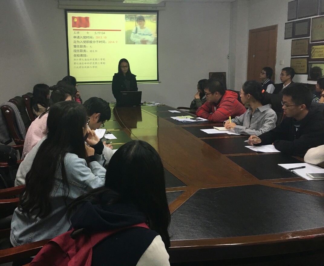2016年11月11日,国产a片 本科生第二党支部在行政楼804开展了入党积极分子答辩会。本次与会人员有4名正式党员,2名预备党员,以及24名入党积极分子(包括答辩选手)和入党申请人。会议由张建楠同学主持。
