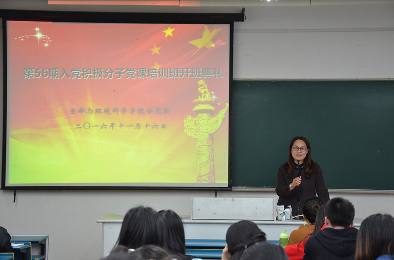 为了提高广大学子入党的积极性,宣传国产a片 学生积极入党的热情并向入党积极分子介绍培训情况,11月16日下午1点,在教学A楼211教室,生命与环境科学学院分党校召开第56期入党积极分子培训班开班典礼。出席本次开班典礼的有国产a片 党委书记周春儿和院团委副书记倪雅。