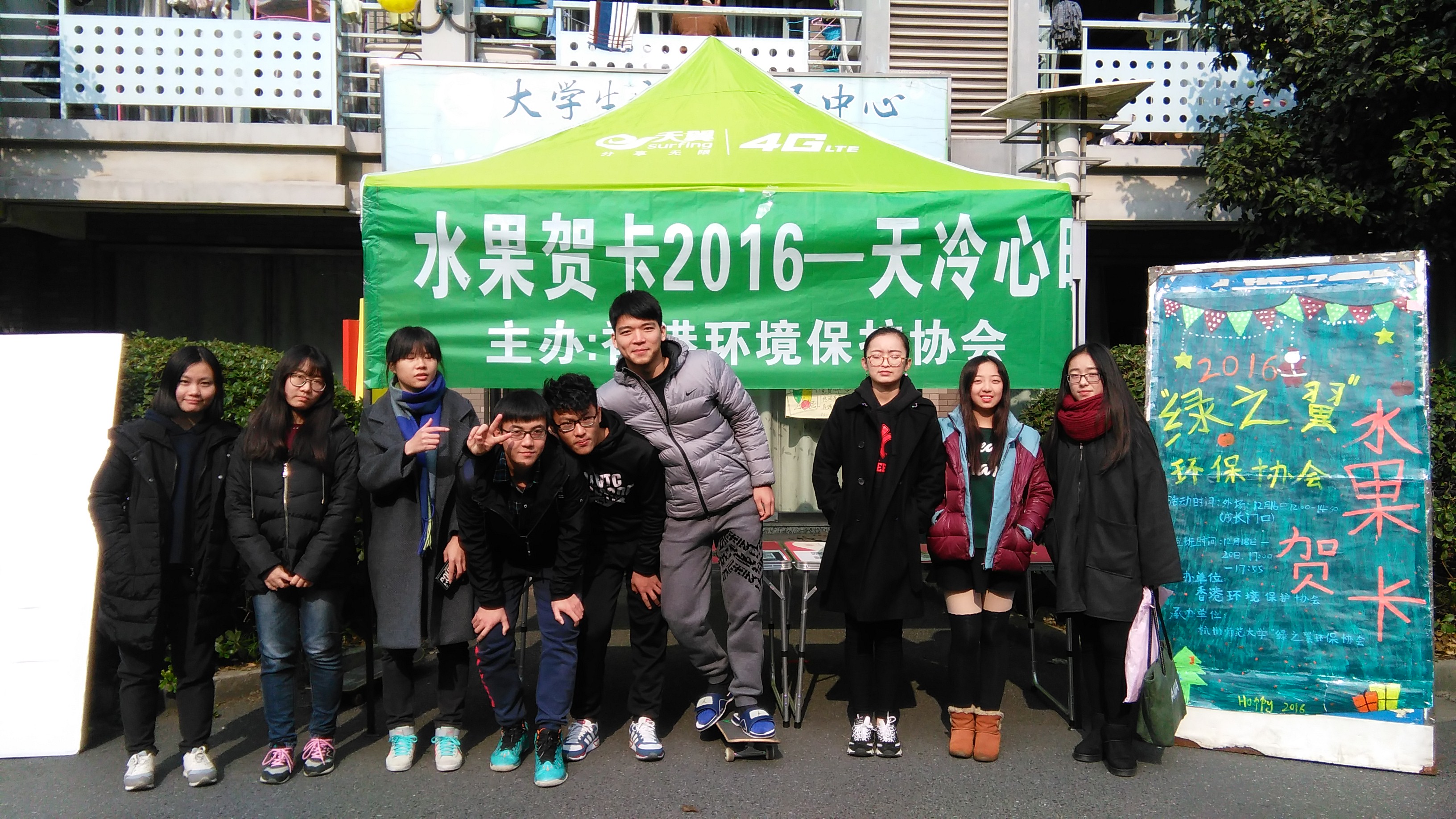 12月16日,国产a片 "绿之翼"环保协会在大学生成长指导中心门口成功举办了2016全国高校水果贺卡的外场宣传活动。水果贺卡是由香港环境保护协会主办的一个延续了十年的公益环保项目,提倡同学们用水果代替纸质贺卡,在圣诞节传递祝福,旨在唤起同学们的环保意识。