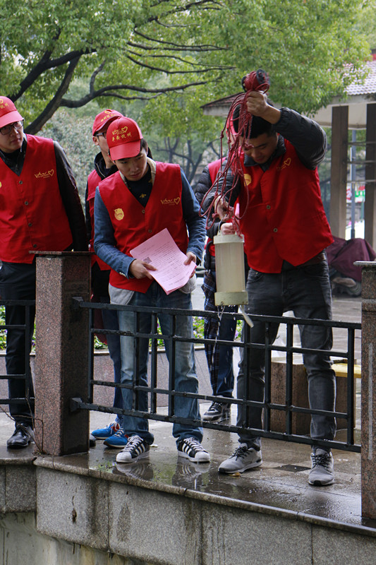 启动仪式后,杭师大"绿之翼"志愿者队作为青年志愿者治水突击队,也分赴不同河道进行河水突击采样,切实做好黑臭河的整治巩固工作。为河水变清,他们孜孜不倦,用行动说话,以态度感人。