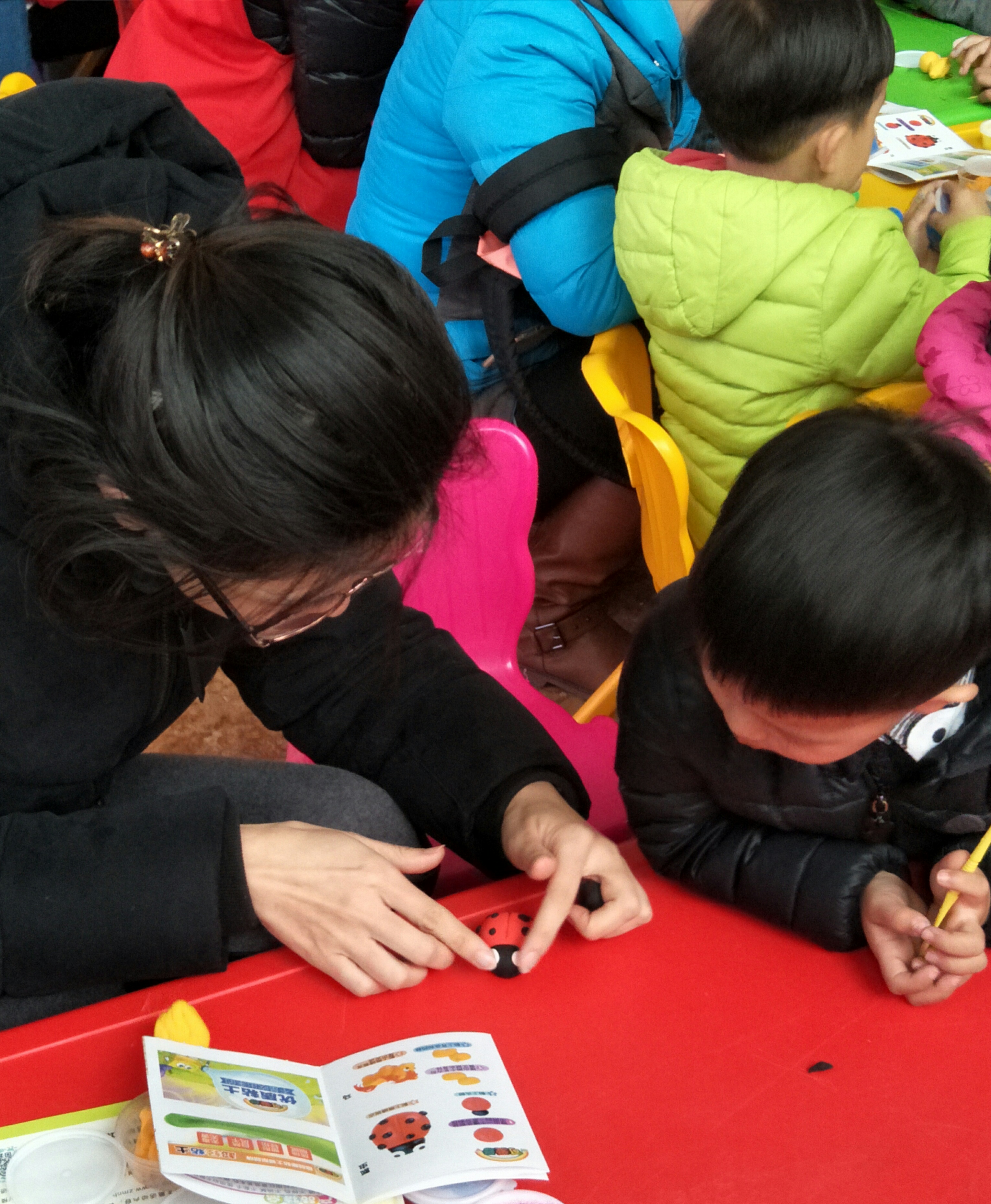 活动伊始,家长小朋友们就已经被吸引围观过来。活动气氛盛涨,些许小朋友刚参观完博物馆饿着肚子却执意要先参加我们超轻黏土制作活动。博物馆里的小朋友一个个坐在凳子上,翘首以待。拥有丰富想象力和一双巧手的他们,在家长还有志愿者的帮助下,捏造着自己喜爱的小动物,有小熊、小鸭子、七星瓢虫等,完成之后高兴举起。活动结束之后有家长反映,多亏了B.D.服务社举办的这次活动,她的孩子玩得很开心。