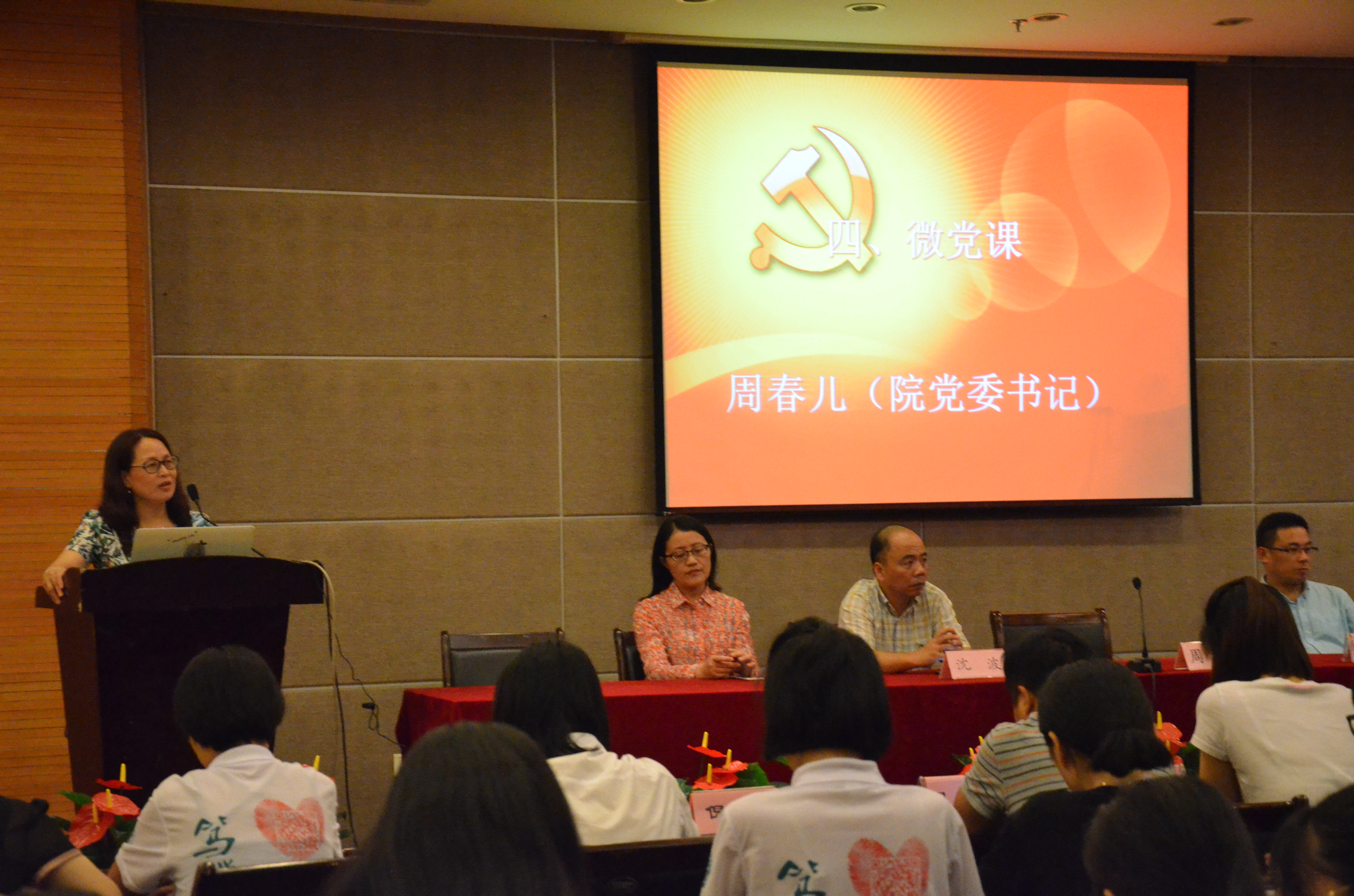 随后,党委书记周春儿为毕业生党员们上了在杭师大的最后一堂党课。她简要的讲述以下几点:首先,她向毕业生们表示祝贺,当代的大学生,在座的所有人,有很好的硬件和软件设施学习环境,相比从前大家是幸运的,可不管在当时她身处的艰苦年代,还是现在的幸福年代,大学生活仍然是人生中最值得回忆的时代。同时,她代表国产a片 党委向大家提出了几点要求。第一,希望在座的各位,不忘初心,坚定理想意识,增强党员意识,永远记得自己是一名党员,永远记得自己当初入党时许下的誓言,不要被物质世界的诱惑,冲淡了自己的理想信念。第二希望大家坚持学习,终身学习,不断提高综合素质,保持先进性。身为党员,是先进性的代表。在未来的社会,大家会面对非常多的竞争,而面对竞争的时候,希望在座的各位,可以始终保持一个积极的心态、良好的态度,相比能力,有时态度反而更重要,往往态度才是取胜的关键。而对于能力,大学阶段所习得的知识是远远不够的,所以也需要大家不断地去学习,不断的去完善自我。再者是,对待工作、对待事物的情感也是未来党员生活中不可或缺的重要部分,你们对于父母的情感,对于朋友的情感,对于工作的情感,决定了你是快乐的工作还是苦闷的工作,这将会影响你在工作、生活中取得什么样的成果。周春儿书记还希望大家在未来人生的道路上做一名清正廉洁、光明磊落的党员,心中永远装着群众,做到全心全意为人民服务,起好模范带头作用,永远记得自己是一名光荣的共产党员。最后,倪雅老师对党组织转接的注意事项进行了说明。