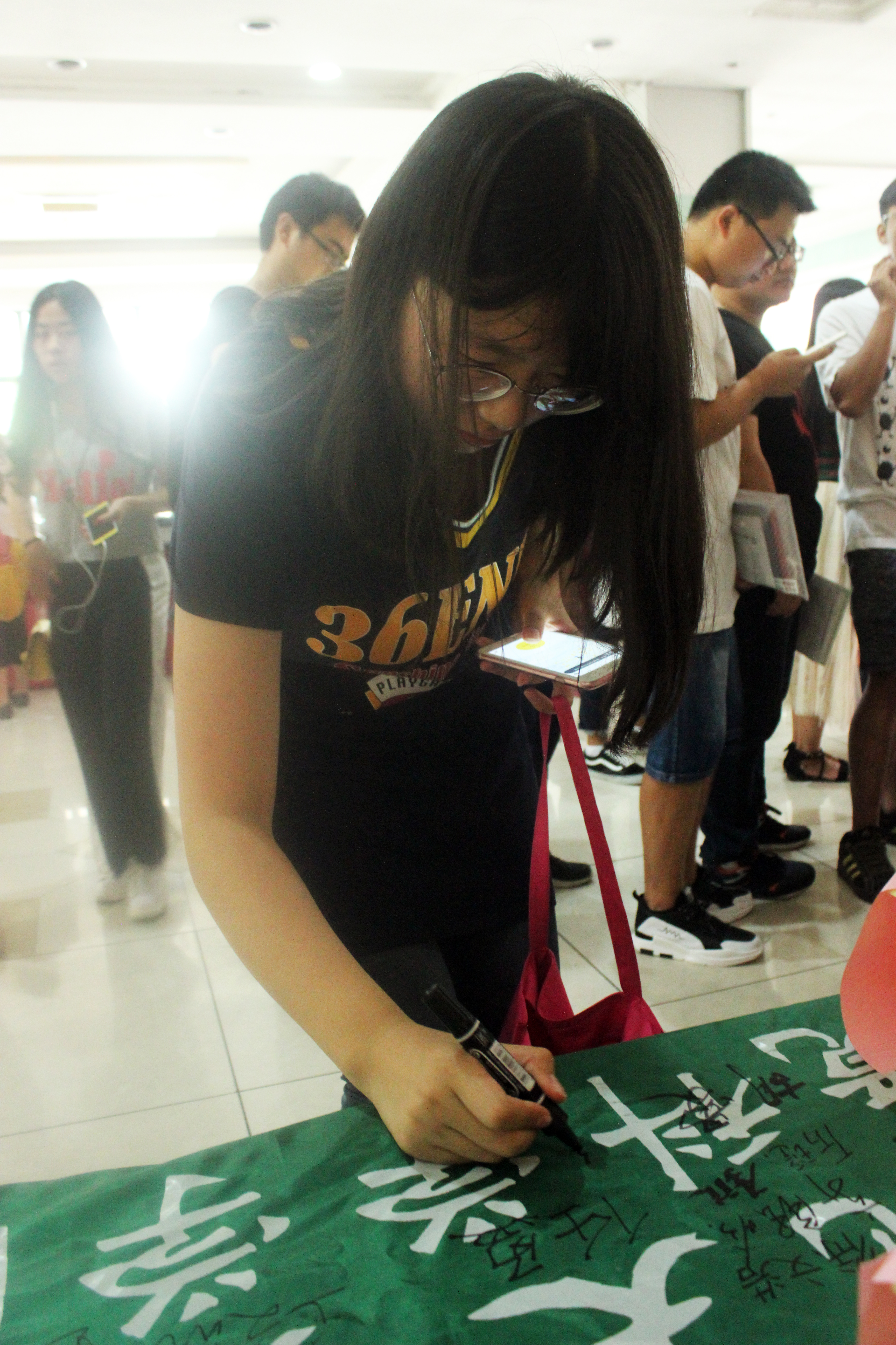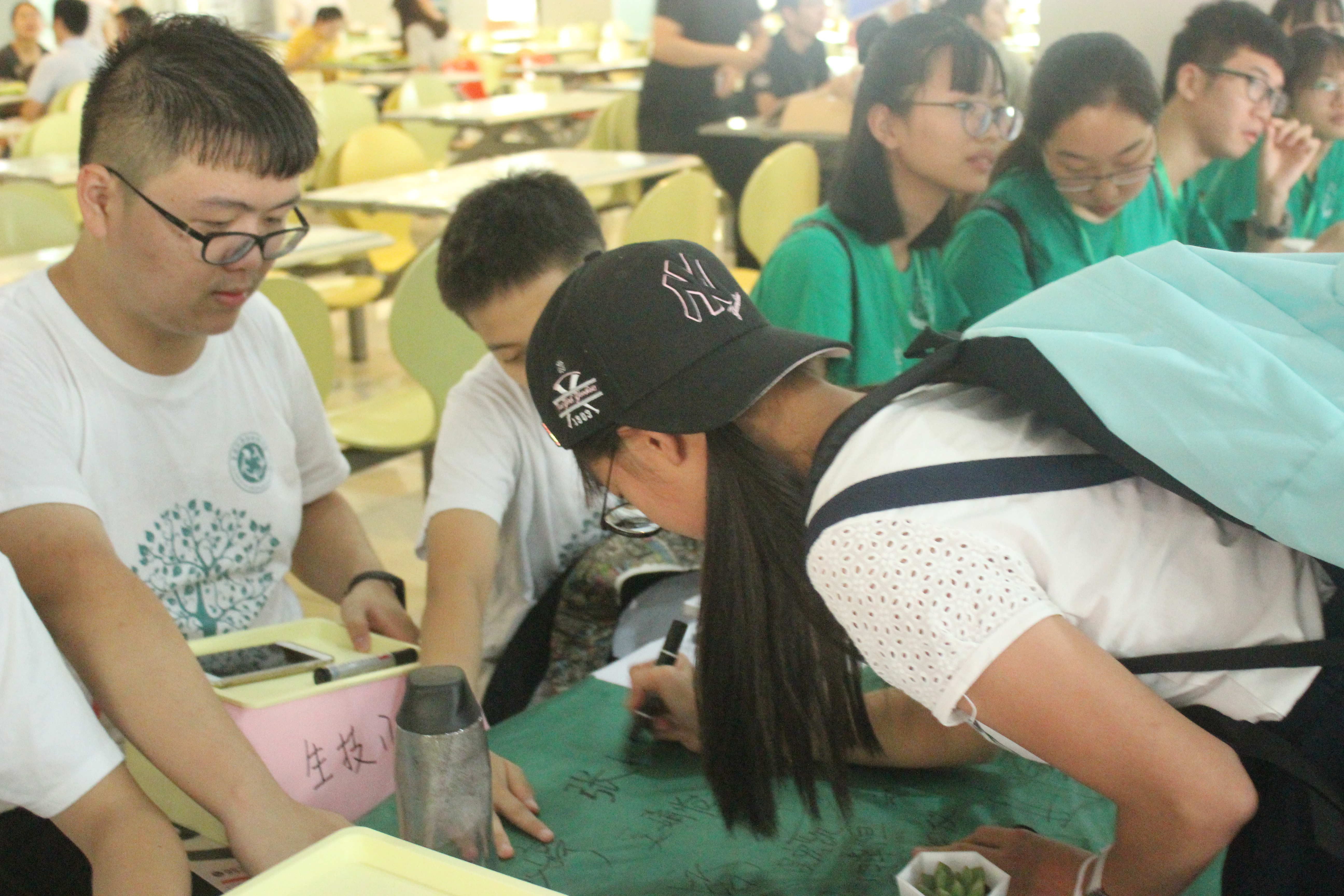 留念——除了“绿植领养”,在食堂国产a片 还设置了“签院旗”活动,院旗作为国产a片 的标志,将会是大家四年时光里重要的一部分,新生在跨入大学之际,将自己的名字签于院旗上,留下自己的姓名,留下自己的期许,也留下踏入国产a片 的第一笔。