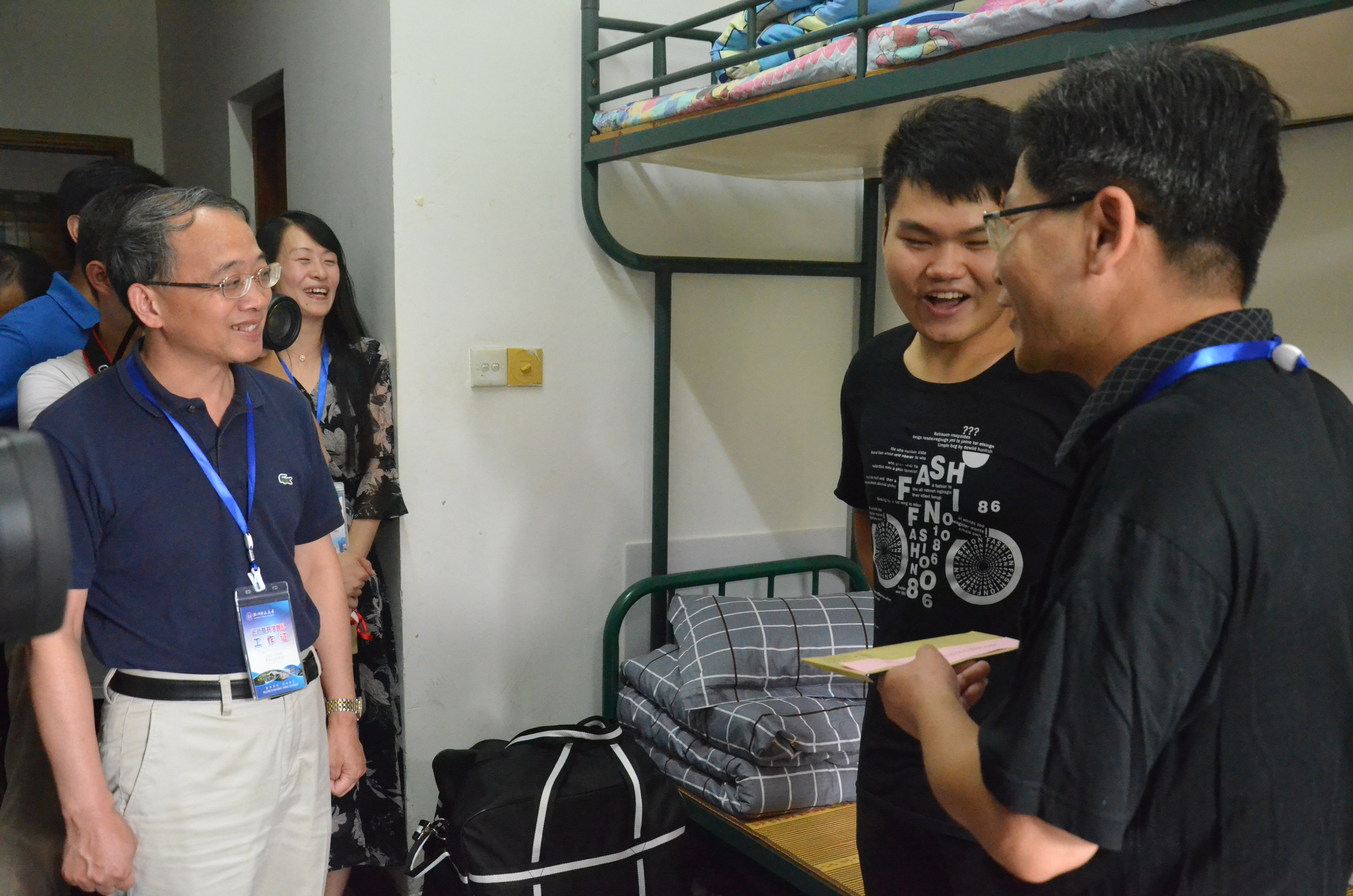 在寝室走访的过程中,陈春雷书记、王慧中院长与学生及学生家长进行了友好的交谈。亲切地询问学生来自何处?是否与家长一同前来?入学报到是否顺利?是否适应学校寝室的环境等,无一不体现出对学生的亲切关怀。每走访一处,陈春雷书记和王慧中院长等人鼓励学生刻苦学习,乐观坚强,与室友和谐相处。从家乡到学校,从住宿到饮食,一点点的拉低与学生之间的距离感。陈春雷书记表示,国产a片 是个有爱的大集体,有任何困难提出来,各位老师同学都会帮忙解决。寒窗苦读十余载,珍惜这得来不易的上学机会。面对领导们的关心,同学们也纷纷表示一定会尽自己所能,好好学习,用知识改变命运,为学校争光,为社会做出贡献。