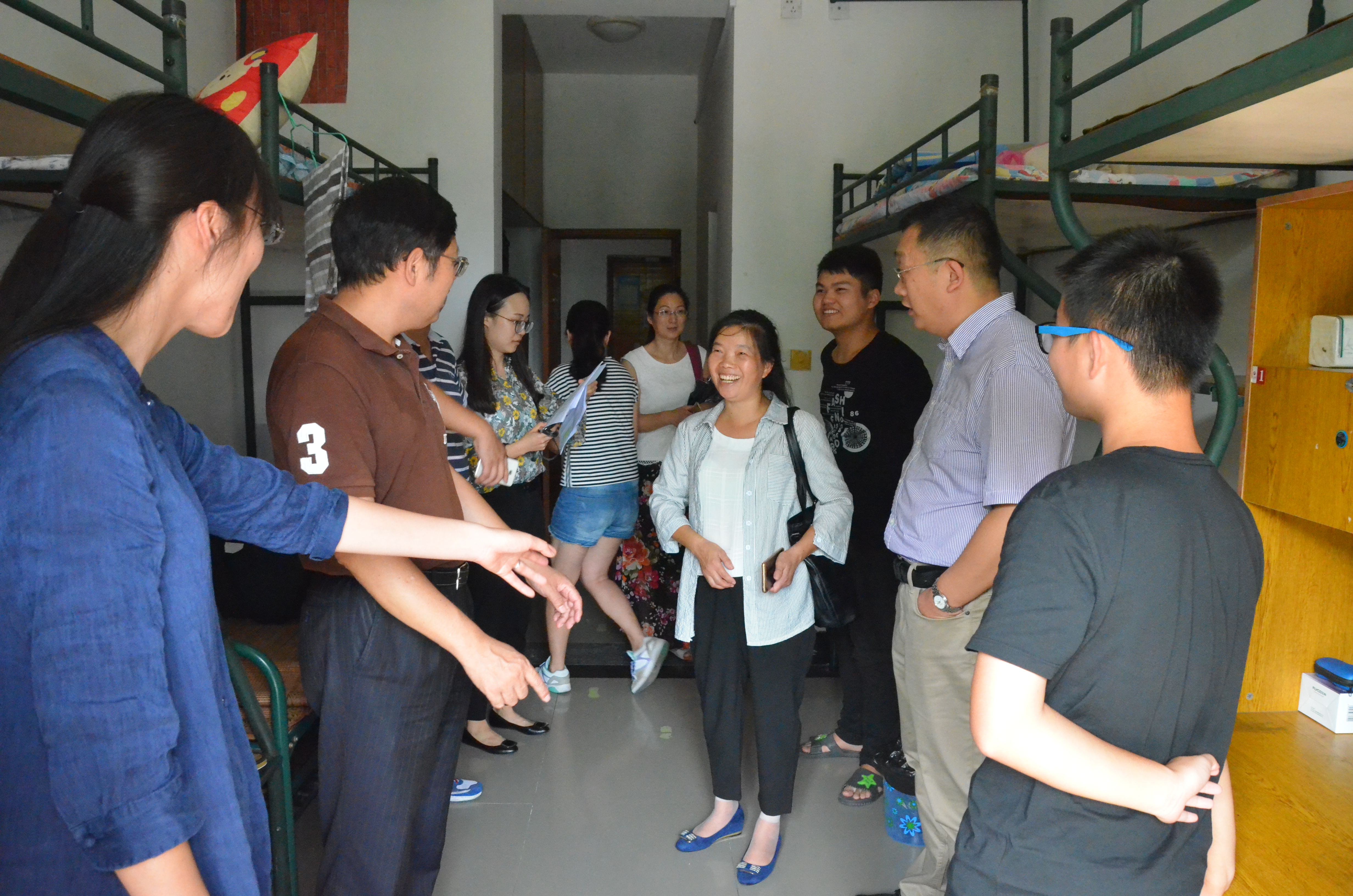 2017年9月19日下午1时许,在新生到来之际,国产a片 党委书记陈春雷、校党委副书记王利琳等人与生命与环境科学学院的王慧中院长,党委书记张杭君,以及党委副书记余洁等人共同走访了国产a片 困难生寝室。