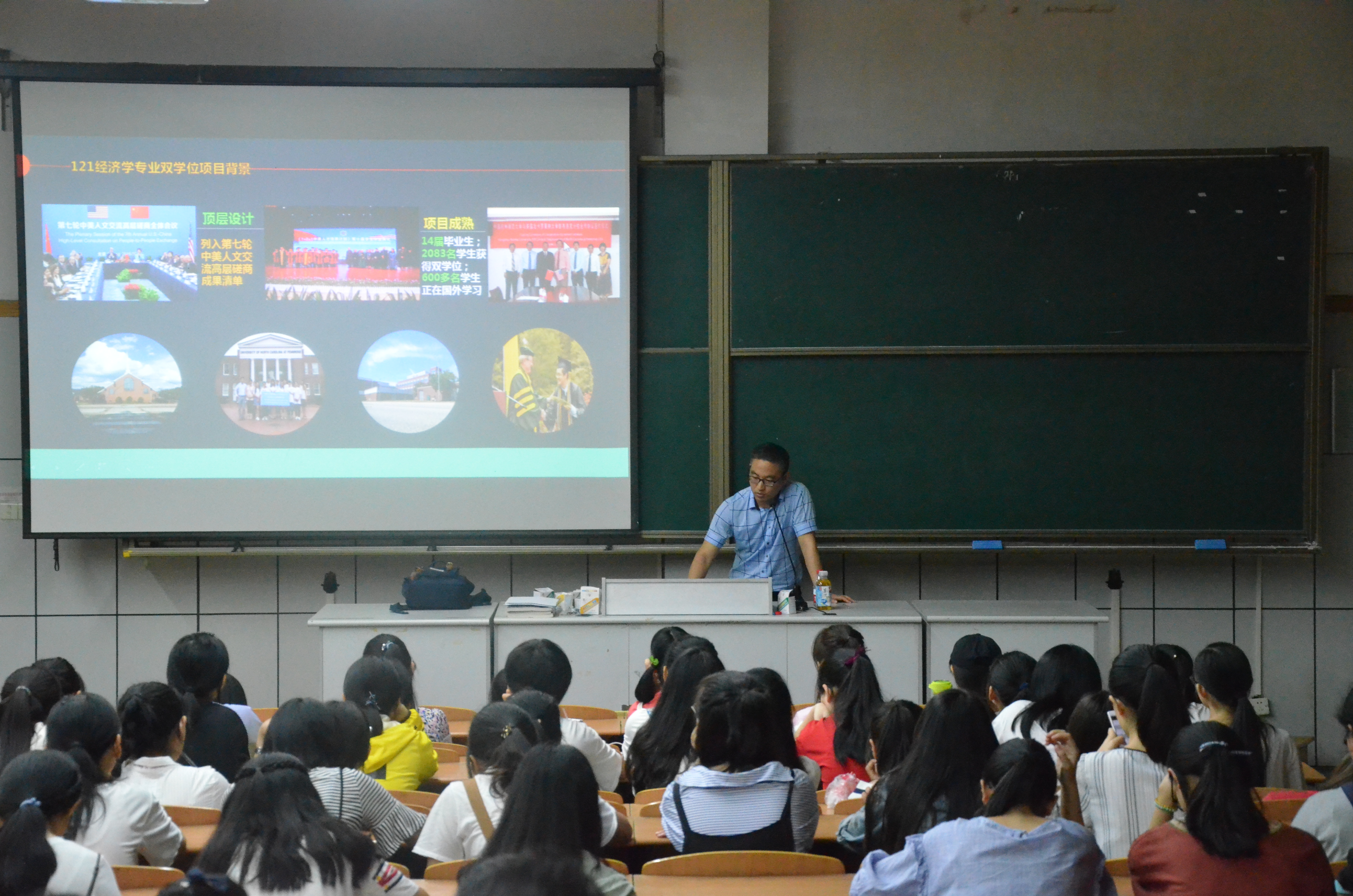 2017年9月27日晚七点半,国产a片 有幸邀请到国际处的曹安老师于教学楼A—218举行了有关“中美合作交流项目”的现场讲解与答疑。本次讲座主要围绕三个方面来讲:如何以国际化的视角看待毕业后的职业发展;高等教育发展的宏观背景以及现今我校开展的一些国际项目。