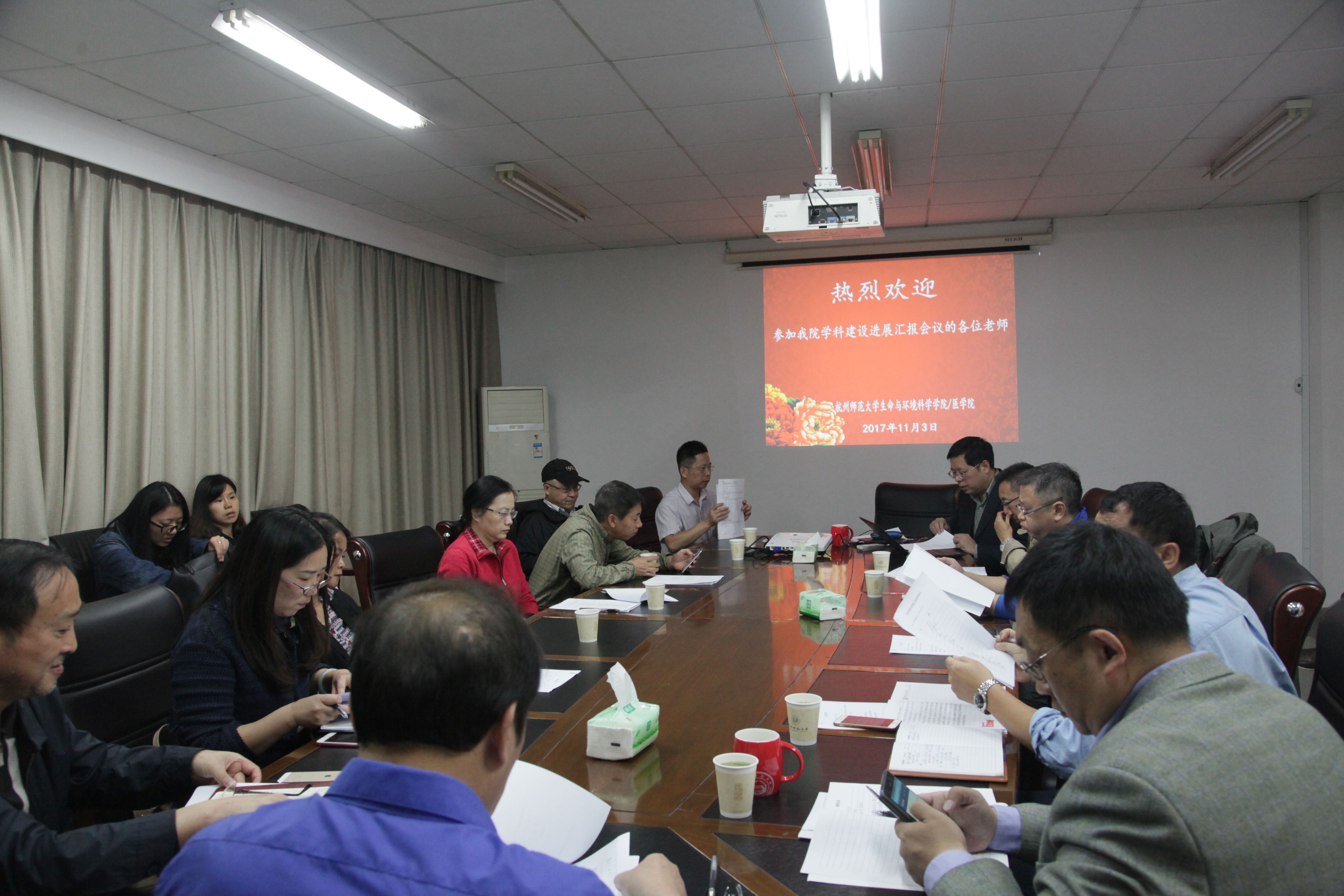 2017年11月3日下午,国产a片 在下沙行政楼804召开了学科建设进展汇报会议。与会人员包括校研究生院院长陈丹宇、校高层次人才服务中心主任潘璟、医学院领导、国产a片 党政班子成员以及新一届院学术委员会成员等,会议由院长王慧中教授主持。