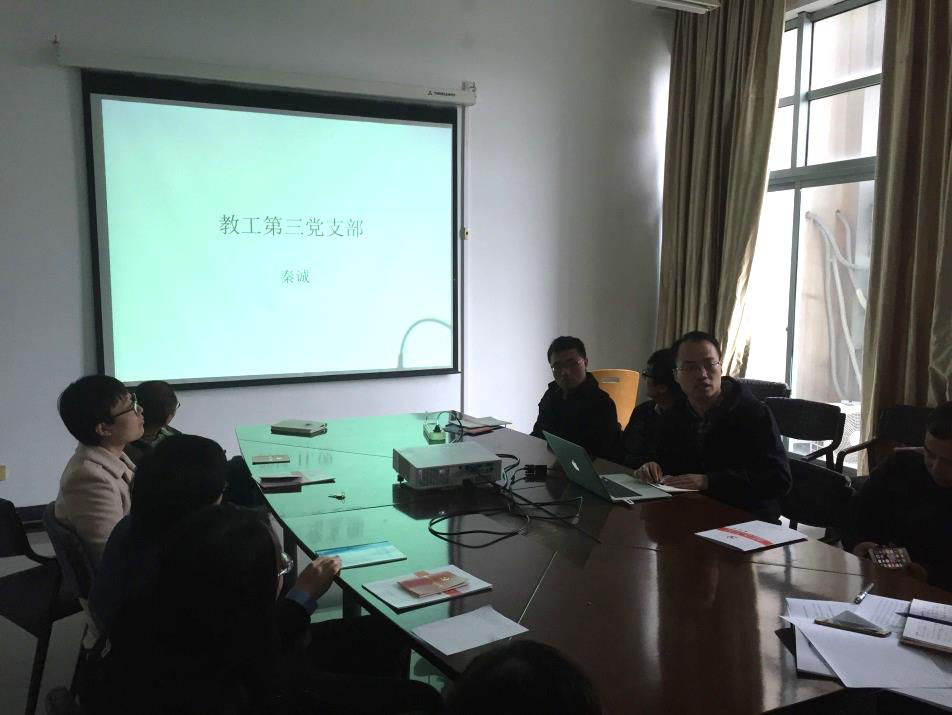 2017年11月15日,国产a片 教工第三党支部在第一实验楼406开展了党员固定活动日,学习贯彻党的十九大报告精神。会议伊始,由陈飞同志做点名工作,确认党员到会情况,党支部总共24人,实到20人,3人请假,1人出国进修。