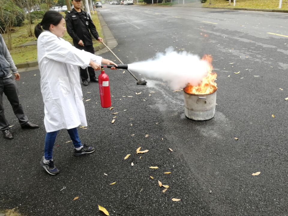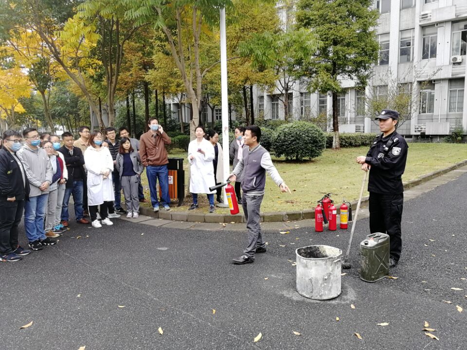 随后,所有参赛的人员前往4号楼-5号实验楼之间的北侧空地进行消防培训。现场学校保卫处为我们演示了二氧化碳灭火器的正确使用方法。同时,学院师生积极参加消防灭火实操演练。