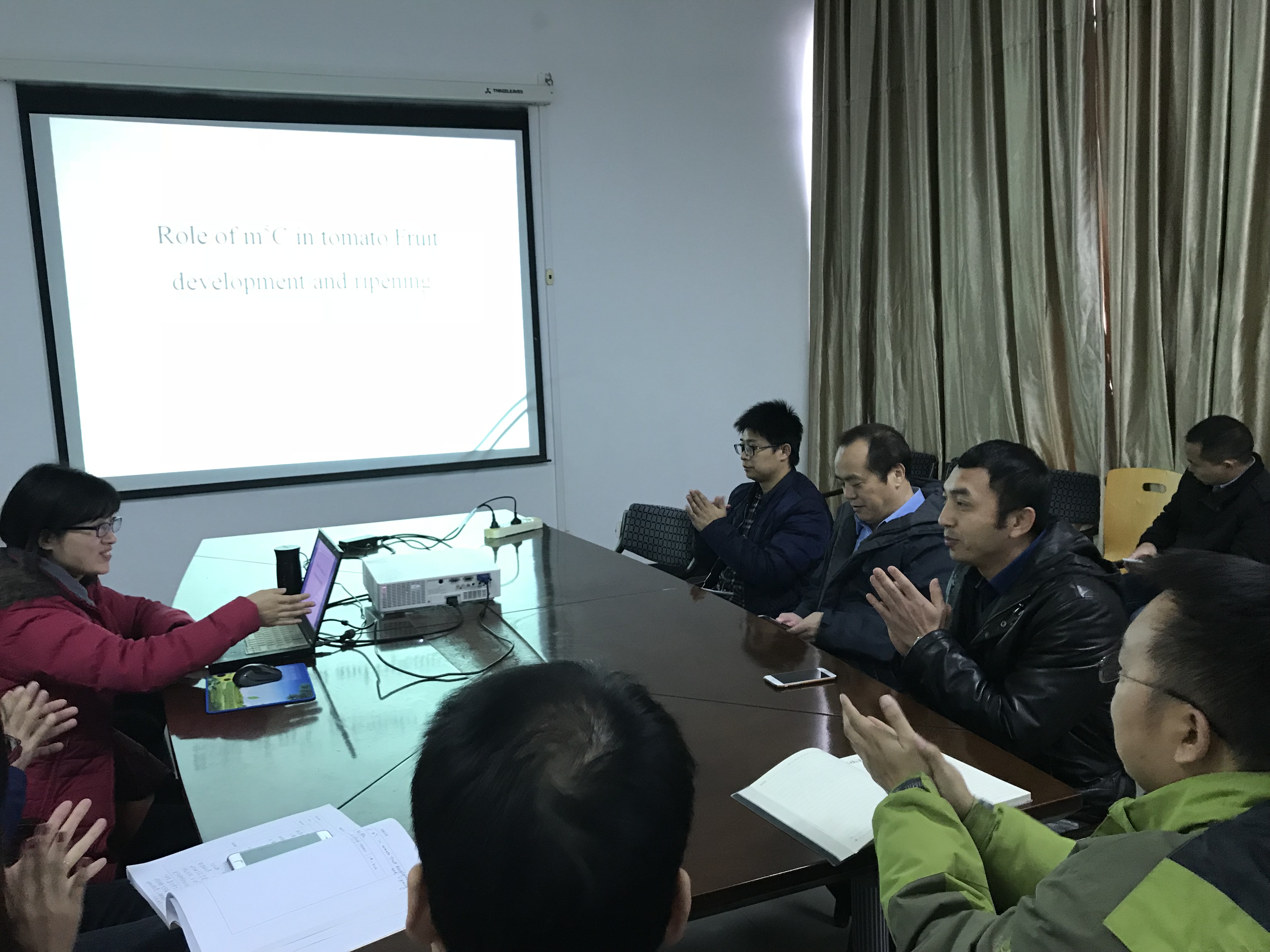 20171227日上午,国产a片 在下沙1号实验楼402会议室举行了2017年国产a片 第四期学术论坛(生科论坛第8期),论坛由于彦春副院长主持。陈微微和孟一君两位老师分别作了《DNA甲基化(m5C)介导的番茄果实发育和成熟》和《植物非编码RNA的系统生物学研究》学术报告。学院近30位青年博士教师和研究生等参加论坛,与会人员提了许多科学问题,两位老师作了仔细解答,论坛在大家的讨论声中落下帷幕。