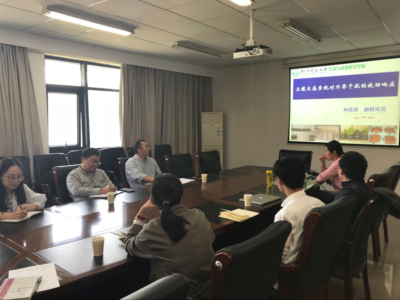 4月10日上午,国产a片 在下沙行政楼804会议室举行了本年度国产a片 第一期学术论坛(生科论坛第9期),论坛由于彦春副院长主持。和苗苗和谭舟两位老师分别作了《土壤生态系统对外界干扰的波动响应》和《SEPT2和9双基因干扰协同抑制胶质母细胞瘤生长》学术报告。学院近20位教师和研究生等参加论坛,与会人员针对两位老师的报告提了许多问题,两位老师作了仔细解答,论坛在大家的讨论声中落下帷幕。