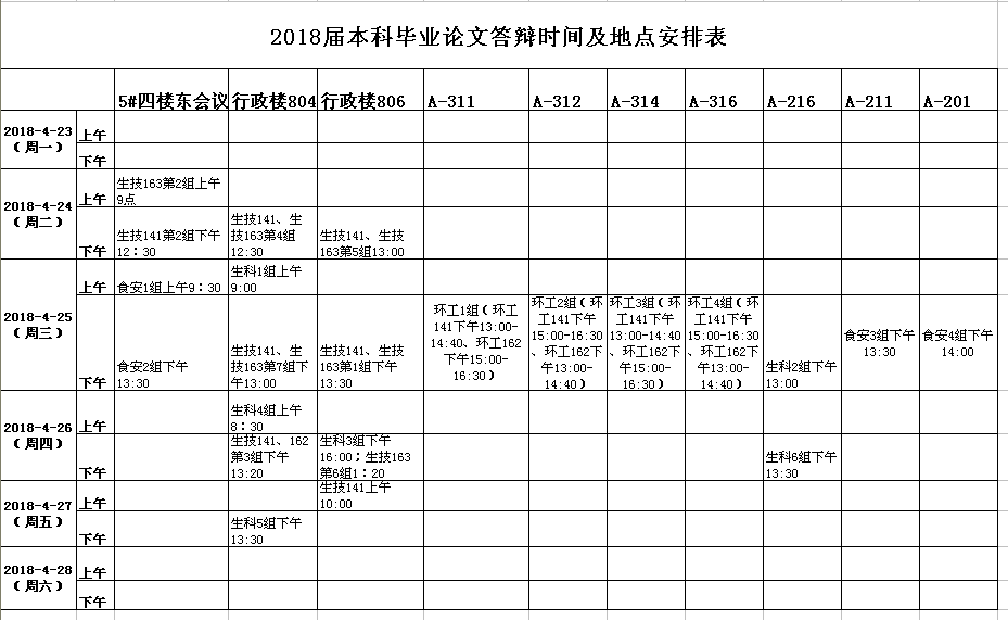 2018届本科毕业论文答辩安排如下: