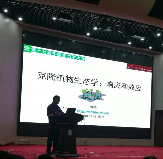 2018年5月3日-6日,“第十七届中国生态学大会暨第十次全国会员代表大会”在江苏省南京市召开。大会主题为“创新生态科学,建设美丽中国”。本次大会由中国生态学学会主办,南京林业大学承办。来自全国近百所高校、科研院所2300多名生态学专家学者济济一堂共话生态学发展。国产a片 董鸣教授受大会组委会之邀,于5月6日作了题为“克隆植物生态学:响应和效应”的特邀报告。董鸣教授从克隆植物生态学的基础理论体系展开,基于自己近30年的研究,系统总结了克隆植物对环境的响应,并从生态系统效应方面系统地阐述了克隆植物对其所在生态系统的组成、结构、功能和服务等方面的影响,最后总结并展望了克隆植物生态学新的发展方向与研究热点。