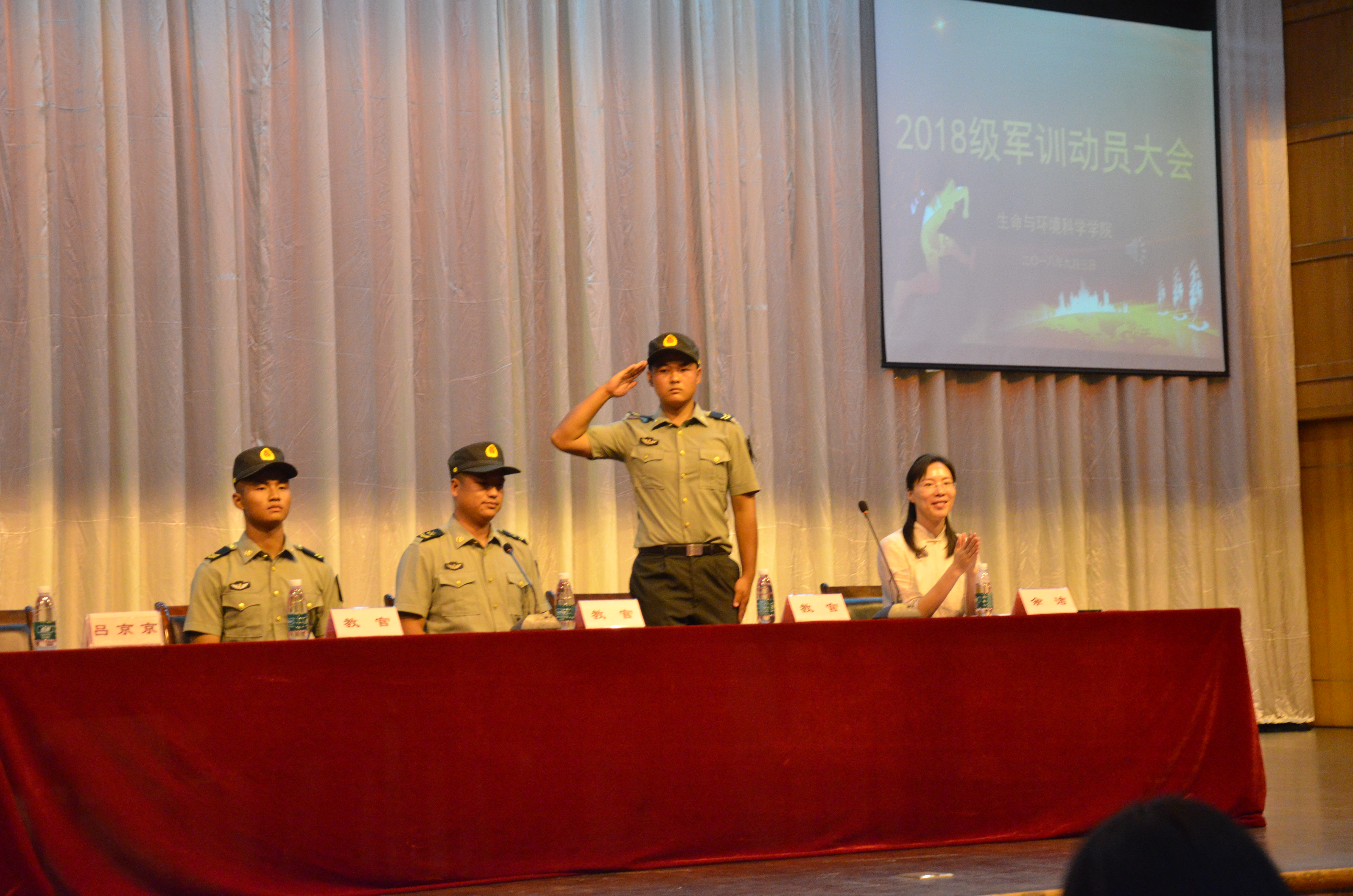 2018年9月3日下午三点,生命与环境科学学院于下沙校区图书馆500座隆重举行国产a片 2018级新生军训动员大会,为即将拉开的为期两周的军事训练教学活动进行动员。党委副书记余洁、2018级新生辅导员吕京京、团委老师岳龙华、三位教官代表以及全体生命与环境科学学院2018级新生在此参加大会,大会由吕京京老师主持。