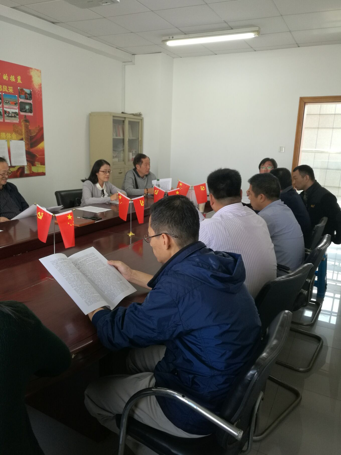 10月17日中午,国产a片 教工第一党支部组织全体党员教师,在行政楼804召开固定活动日活动,重点学习了“全国教育大会精神”、“八八战略内涵及推进深化”、“校党支部堡垒指数、党员先锋指数考评办法”等相关理论及文件精神,并进行了交流讨论。