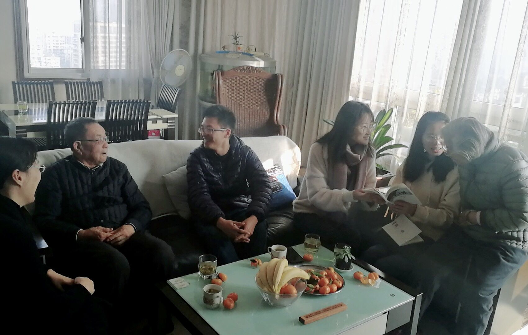 在91岁高龄的老党员周之瑜老师家里,余洁老师热情地握着老人的手,拉家常、叙友情,关切地询问周之瑜老人家身体状况和生活情况。周之瑜老师向两位党员学生了解近期的学习情况,并向两位党员学生提到,在国产a片 学习都应该关注生态环境,将科学文化知识应用到生活,做一位有责任有担当的当代青年。殷殷嘱托、谆谆教诲,让党员学生感受到了温暖,也为学生党员带来一股前进的力量。交谈期间,周之瑜老师还提到,即使自己91岁高龄却仍能够保持时刻学习的习惯,在书桌上整齐的摆放着报纸和马克思恩格斯全集,让来访的党员老师和同学感到惊讶不已。