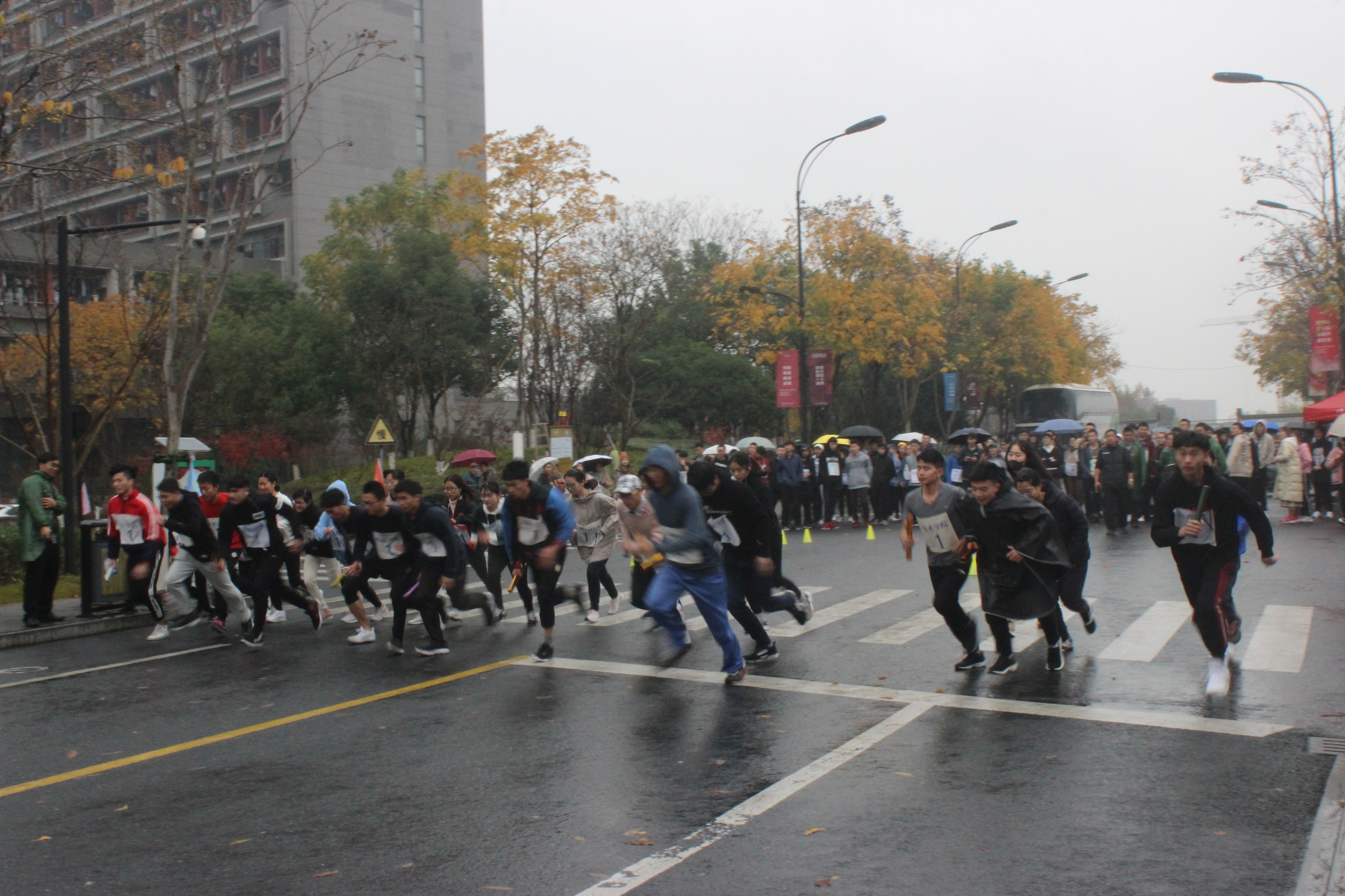 中午12:30,生命与环境科学学院的运动员们前往仓前校区。细雨沙沙,冷风习习,但这丝毫不影响运动健儿们的斗志!13:45分,国产a片 的运动员们到了比赛场地。十位男生十位女生穿着单薄的衣服,带着国产a片 的标牌,做赛前最后的准备。1600*20的接力赛,他们丝毫不怯场,下午14:10分,“一二·九”马拉松接力赛正式开始!所有运动员们奋力向前冲去,地板湿漉漉的,但也阻挡不了大家的热情。