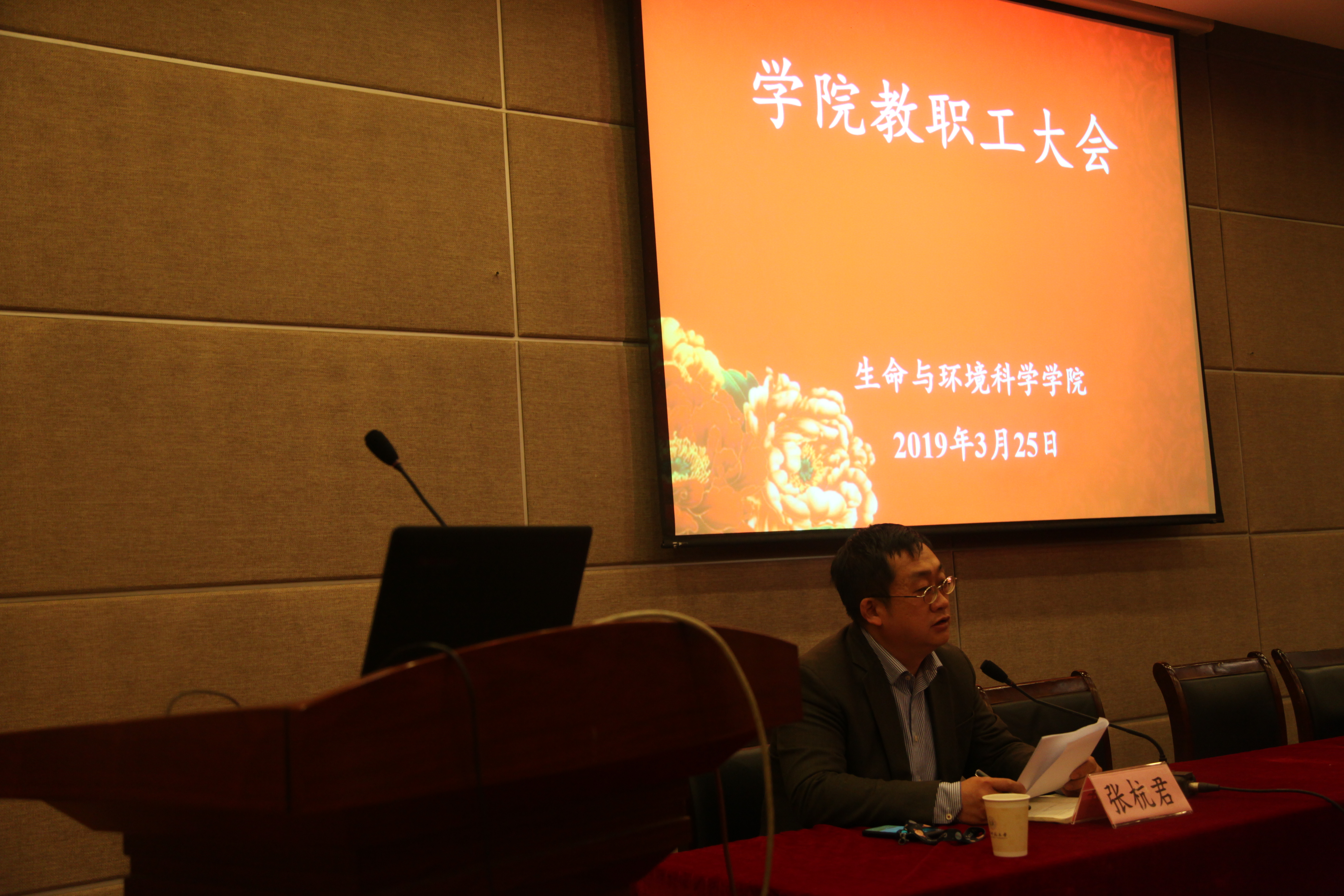 325下午,学院在叙伦厅召开全院教职工大会,传达学校三届二次双代会精神。