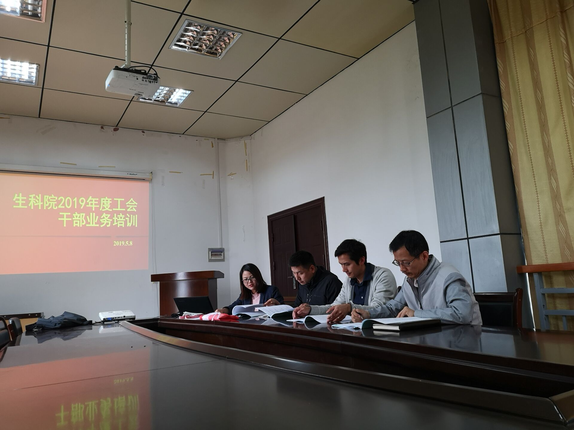为进一步加强工会干部队伍建设,提升工会干部素质,5月8日,生科院工会干部培训在5号实验楼东会议室顺利举行。国产a片 工会主席周婷及工会委员张弦、辛越勇、赵晓枫等参加了培训。周主席首先组织学习了5月7日国产a片 工会干部培训班上原校纪委监察处处长、现美术学院党委书记姜建忠老师《新时代工会干部应注意的纪律规矩》的指导精神;传达了校工会常务副主席潘宁通“打造一支绝对忠诚、干事担当、干净自律、充满活力的工会铁军”的期望;解释了国产a片 工会经费收支管理实施细则(杭师大工字【2019】5号)中需要注意的事项;布置了国产a片 近期工会相关工作。通过这次干部培训,大家都受益匪浅,更加明确了自己的使命担当。国产a片 工会也将继续紧密结合实际,为教职工打造丰富多彩的教工活动,让工会更接地气、更有生气、更聚人气!