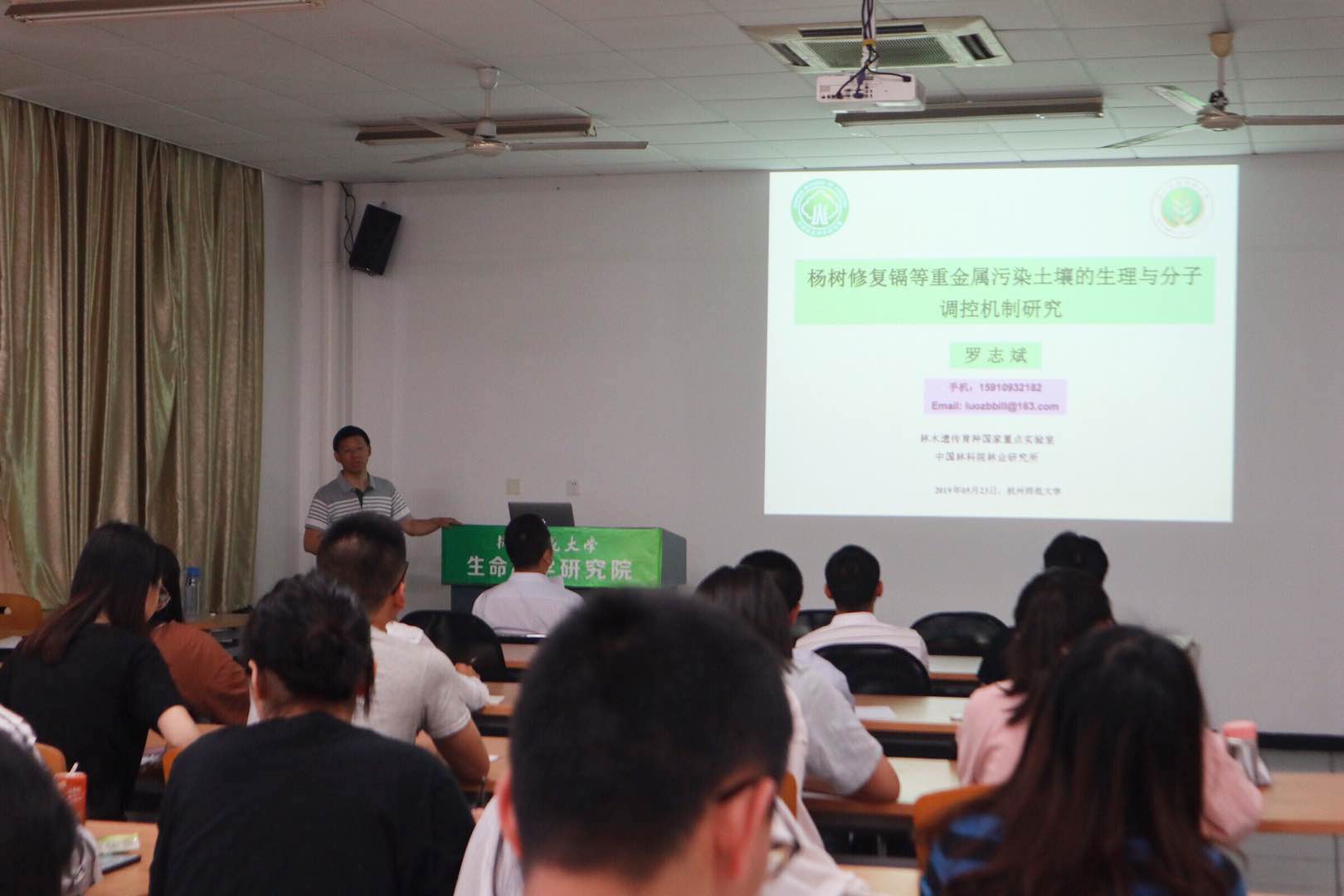 5月23日,中国林科院林业研究所首席专家、研究员、博士生导师罗志斌研究员,应邀来国产a片 为本院师生做主题为“杨树修复镉等重金属污染土壤的生理与分子调控机制研究”的讲座,讲座由李春阳院长主持。