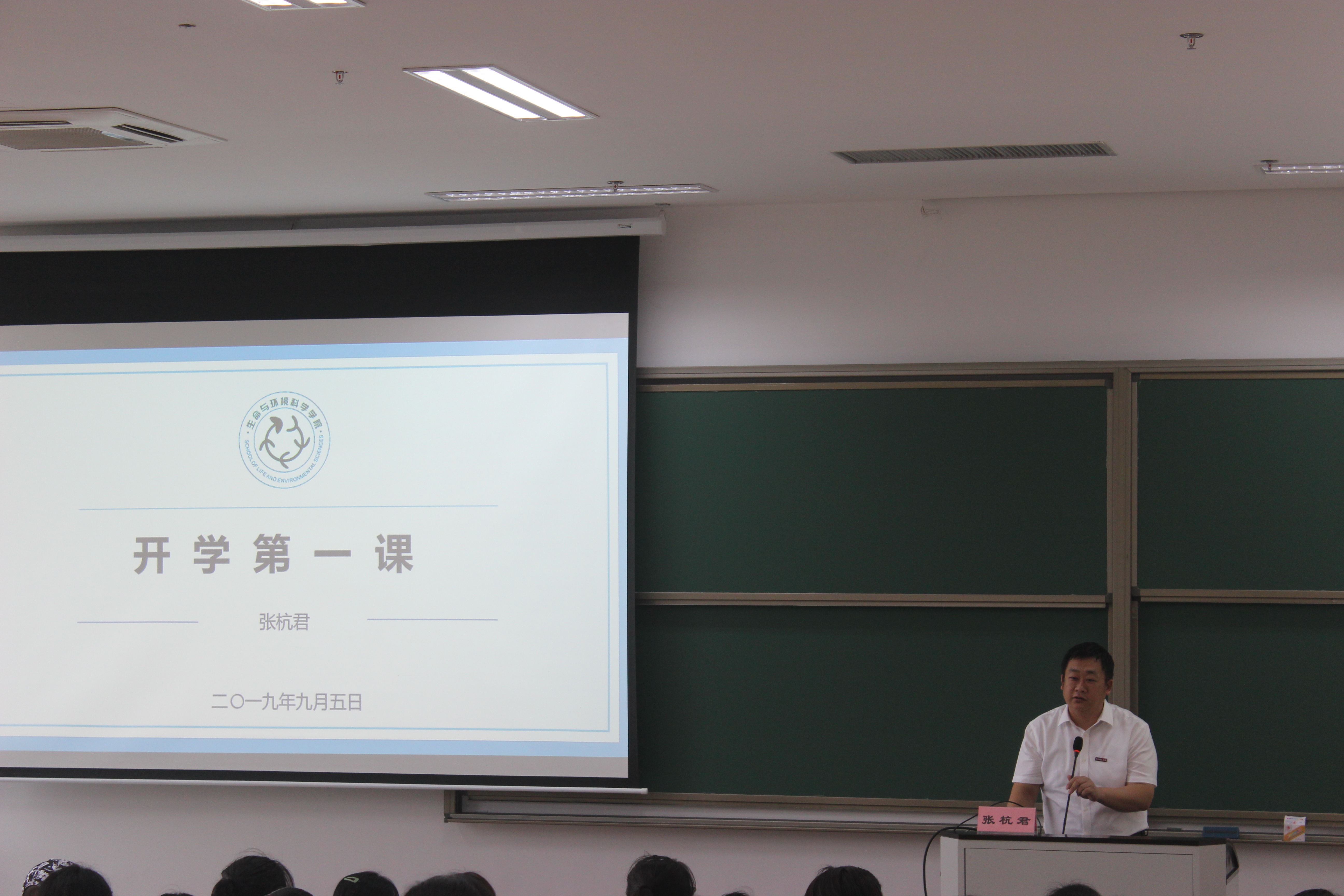 2019年9月5日上午10:30,生命与环境科学学院2019级全体新生在慎园1号楼202教室召开了2019级新生始业教育之开学第一课。此次讲座由国产a片 执行院长张杭君老师主讲。