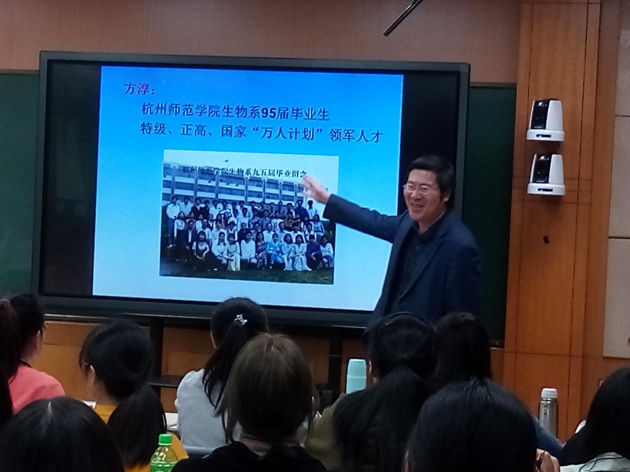 在见习期间,同学们观摩了保叔塔实验学校章吕烨老师的植物科学课和臧艳玲老师的压强科学课;参加了吴玲玲和任霄两位老师的主题班会;聆听了杭十四中特级教师方淳主讲的“关于生物教师入职及专业生成”的讲座。另外,同学们也观摩了国产a片 2016级实习师范生的两节生物公开课。通过以上各种见习环节,同学们观摩到了优秀教师们高超的师范生技能和扎实的生物知识,以及班主任管理能力,同时促动了同学们积极思考自身职业发展和成长规划,提升了师范生教学技能。