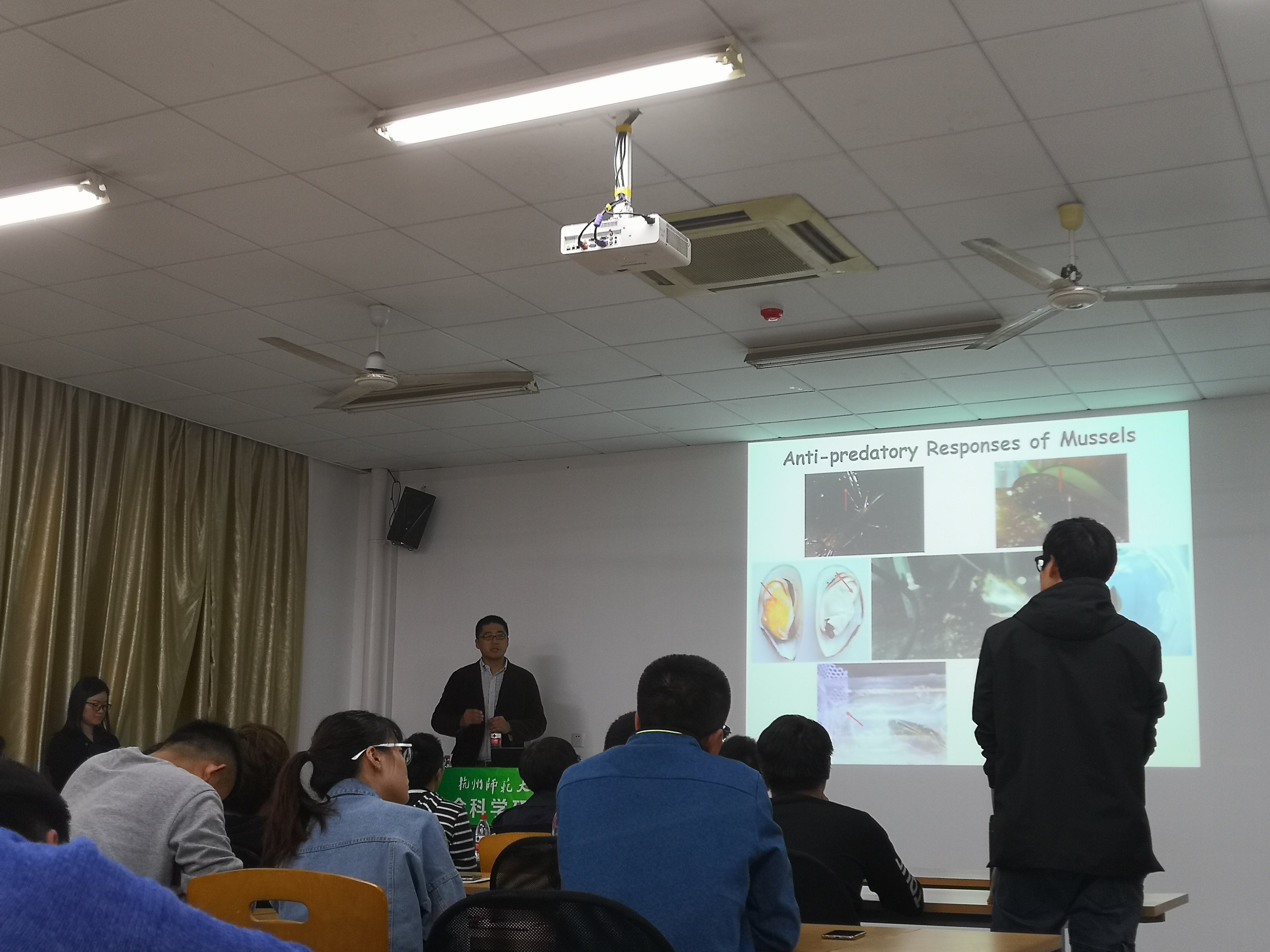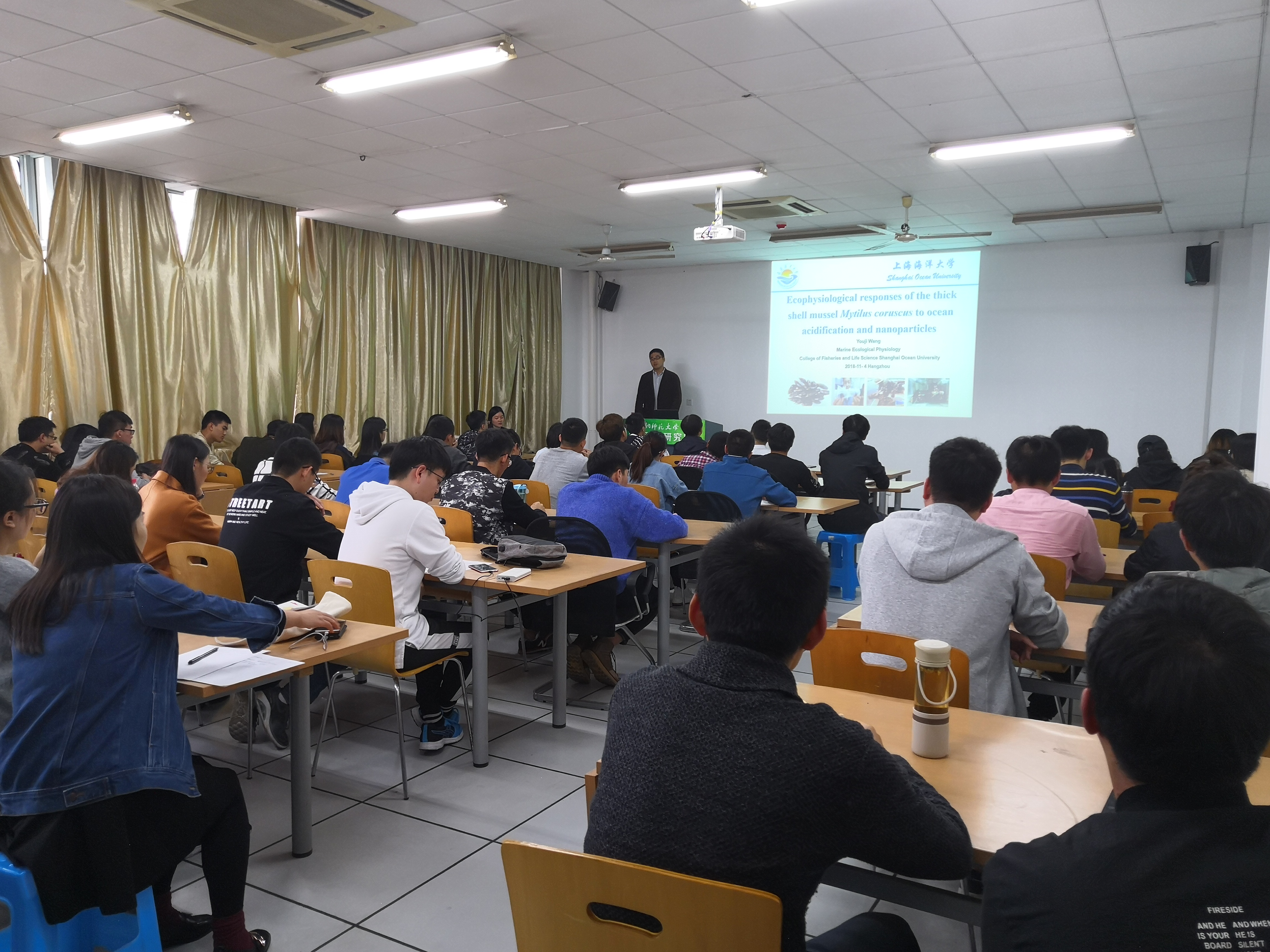 11月5日下午,上海海洋大学王有基教授应邀来我校作了题为“纳米颗粒对贝类的生态毒理效应-典型的模式物种贻贝”的学术报告。国产a片 学术委员会李春阳主任、张杭君教授、吴玉环教授以及陈慧丽教授等出席了本次座谈会,2018级国产a片 全体研究生参加了此次会议。