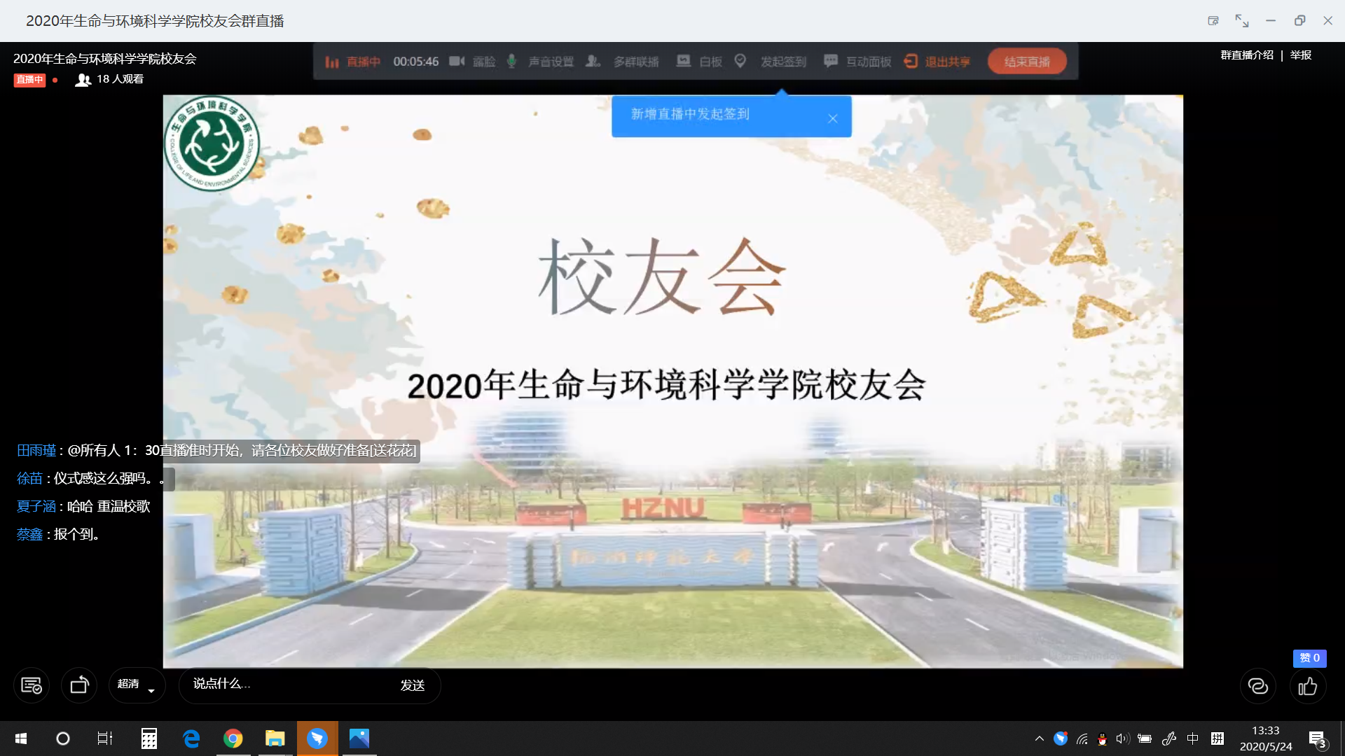 5月24日下午13:30,生命与环境科学学院校友会在钉钉线上平台顺利举行。