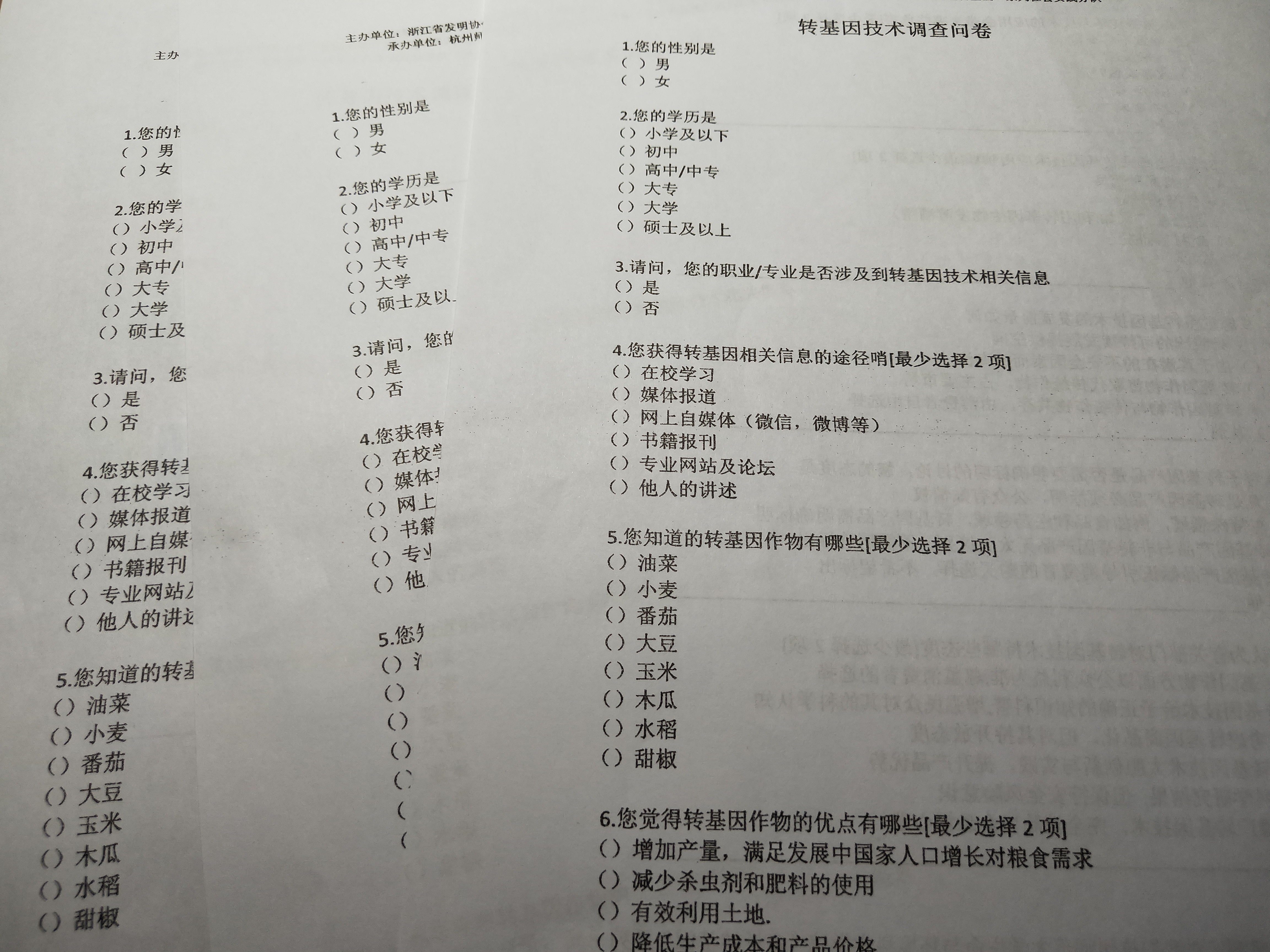 生命与环境科学学院 “走近转基因”调研小分队 纸质问卷成稿