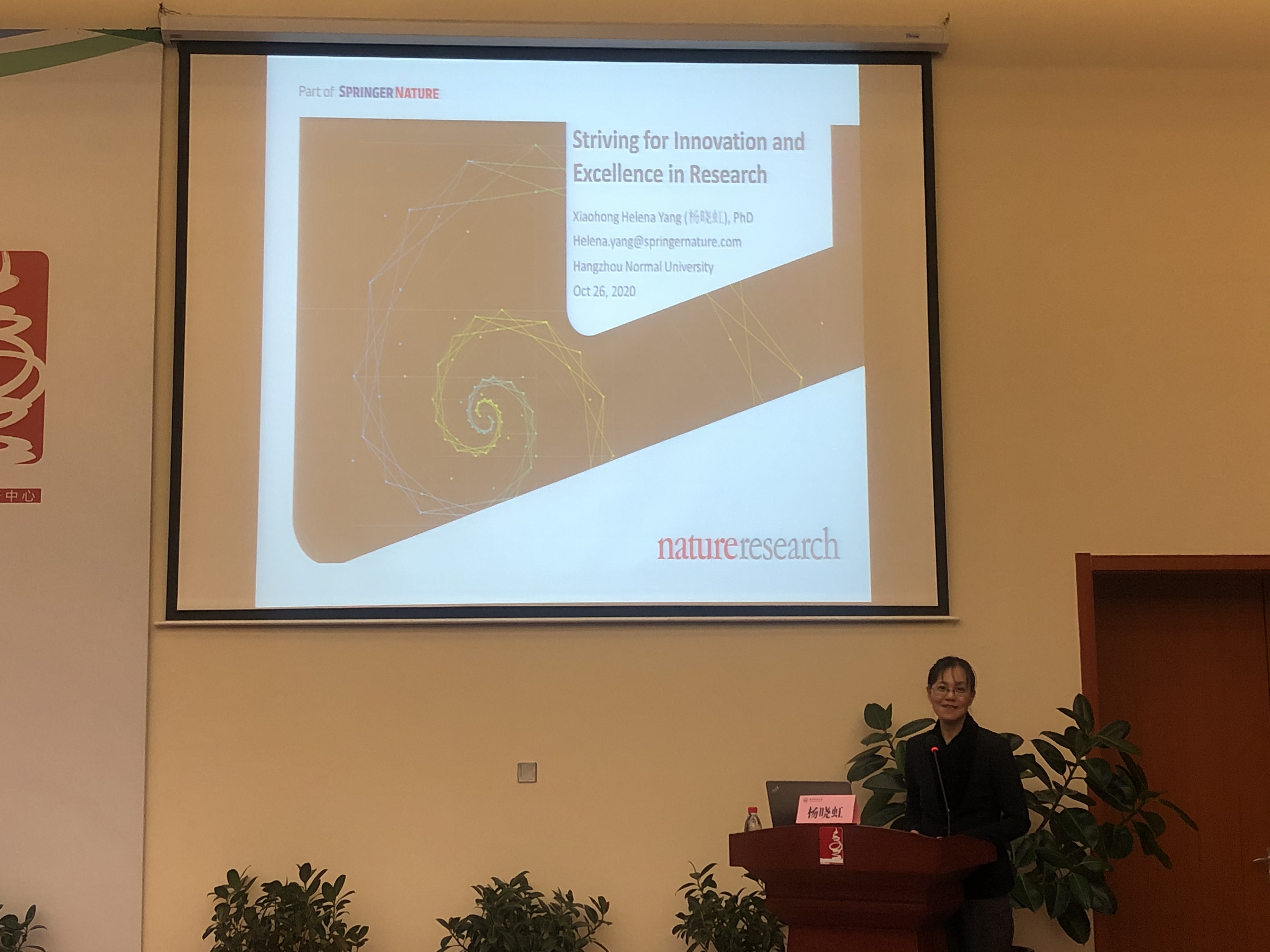 杨晓虹博士作了题为“Striving for Innovation and Excellence in Research”的学术报告,从《自然》系列期刊的发展历程、办刊理念、获得的突破性成果和近年来主要工作等方面作了交流,并与在场师生分享了她的科研心得与体会。杨璐菡博士的报告题为“基因编辑和细胞治疗”,着重介绍了其团队建立的动物CRISPR/Cas9基因编辑技术,并运用该技术对猪进行基因组水平的编辑,敲除猪基因组中所有已知内源性逆转录病毒基因和可能引起移植排异反应的基因,突破异种移植领域研究两大瓶颈的系列工作。讲座上,两位专家还对师生提出的问题进行了详细的解答。