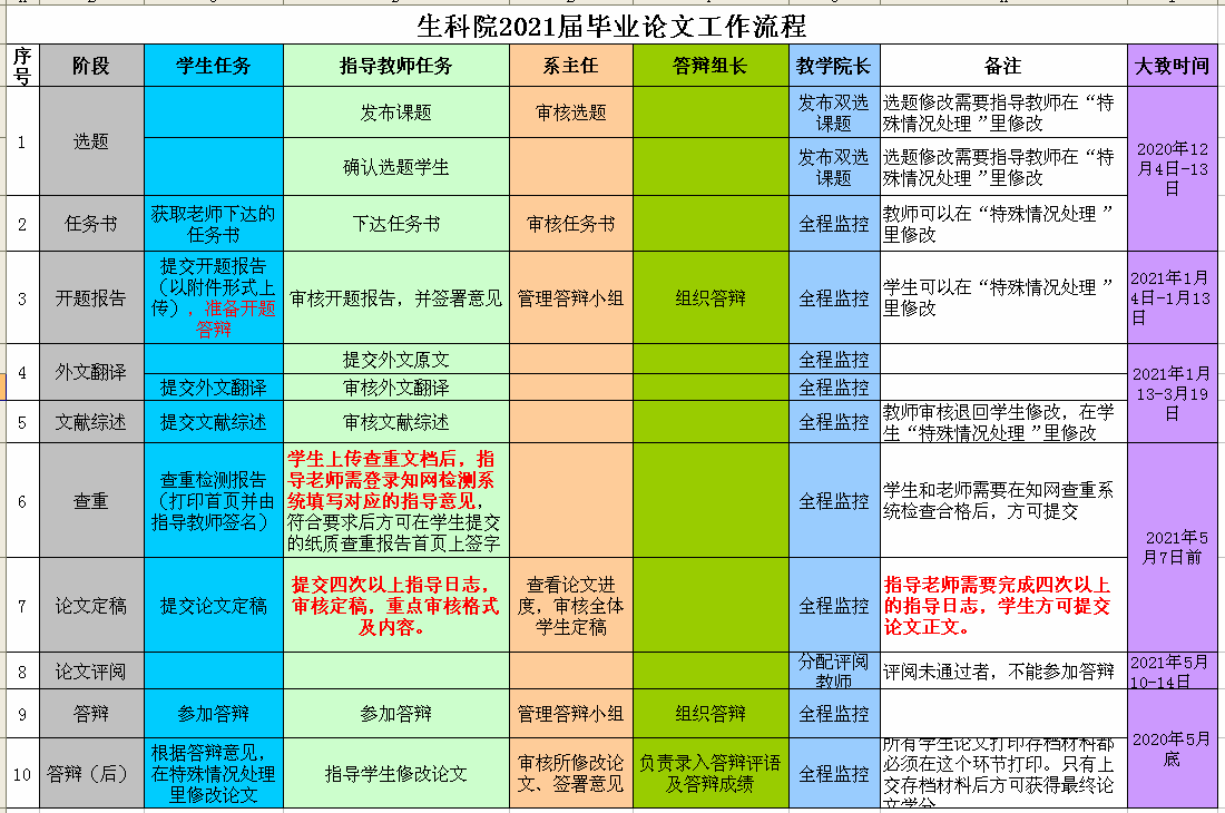 2021届毕业设计(论文)工作即将开始,具体工作流程见下图,请大家按照时间节点完成各流程工作。