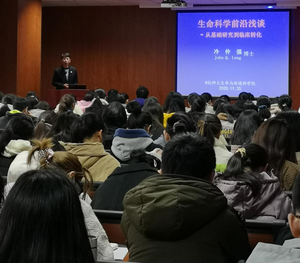 11月25日,来自美国耶鲁大学医学院首席研究员,现任国际企业协会(纽约)副理事长、医学研究中心教授、主任,国际企业协会中国区分会理事长,杭州哈鲁生物科技股份有限公司董事长冷仲强,应邀来国产a片 为2020级本科生做主题为“从基础研究到临床应用”的讲座。冷仲强博士从曾在耶鲁大学医学院参与的细胞与分子生理领域研究的经验出发,介绍了生命科学的国内外发展现况及未来发展趋势。并结合自身在该领域丰富的科研经历,详细讲述了从基础研究到临床应用的过程,拓展了学生的视野及进一步提升了学生对生命科学领域学习的积极性。冷仲强博士以自身经历还多次勉励同学们要努力拼搏抓住机遇。学生们学习兴趣浓厚,并与冷仲強博士就生物专业就业方向、多学科交叉优势、干细胞治疗等话题作了深入讨论。