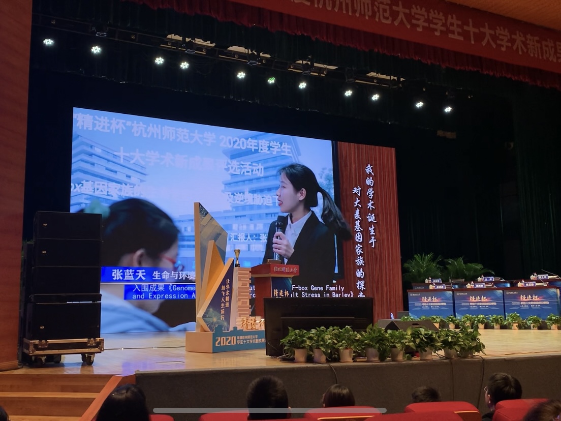她,笃实好学,精进不休,现已保研至浙江大学农学院,在校期间获得“三好学生”称号3次,优秀学生奖学金6次,浙江省政府奖学金2次,生命与环境科学学院REACH(励志)奖学金、国家奖学金各1次。她,坚持探索,钻坚仰高,曾作为负责人荣获浙江省第十一届大学生生命科学竞赛一等奖和全国第三届大学生生命科学竞赛二等奖,并荣获第五届全国大学生生命科学创新创业大赛一等奖。现已发表论文多篇,包括2篇SCI论文。她,勤于奉献,不忘初心,累计志愿服务小时数达101小时,荣获“十佳共青团干部”、“优秀学生干部”、“优秀学生会干部”和“优秀共青团干部”等称号。她,就是生物科学(师范)172班张蓝天。