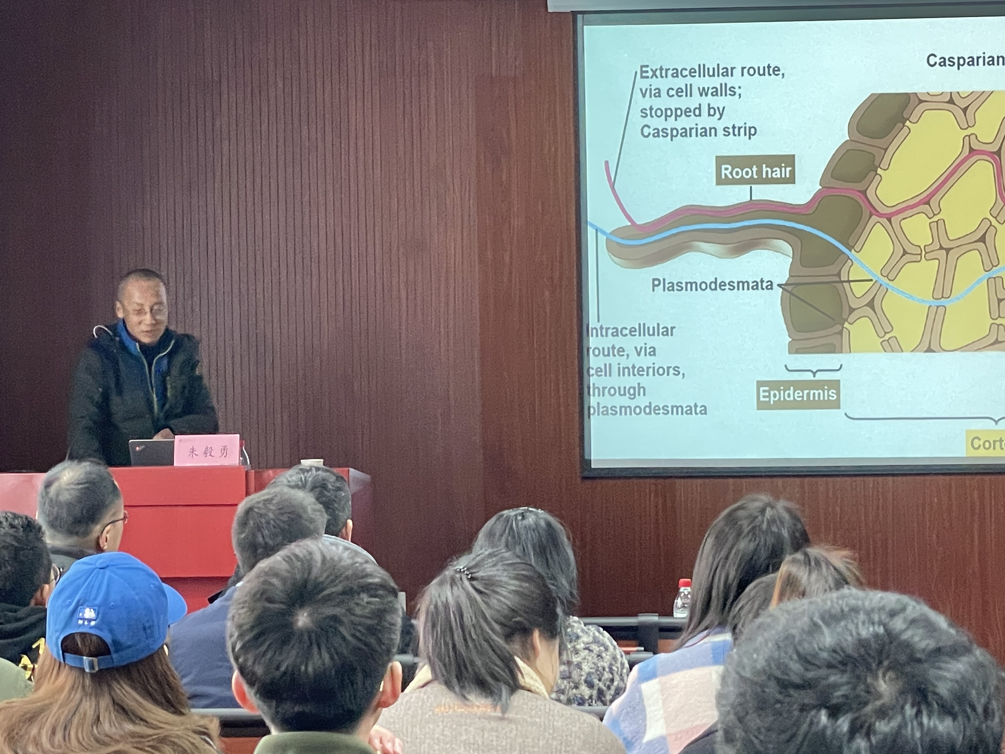朱毅勇教授介绍了植物细胞膜质子泵在植物营养中的作用机制。他主要讲述了养分从土壤到植物细胞的运输途径,细胞膜质子泵作为离子运输的驱动力细胞膜质子泵在植物适应缺磷胁迫和铵硝营养中的作用,在养分运输中的作用和调控机制,以及细胞膜质子泵在水稻碳氮协同利用中的作用机制。