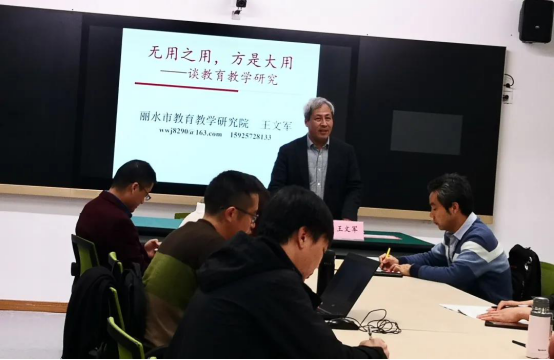最后还邀请了丽水市科学教研员王文军老师关于《无用之用,方为大用——谈教育教学研究》的讲座,王老师从教师专业成长和说课角度,探讨了教科研中的各类问题及解决方法。