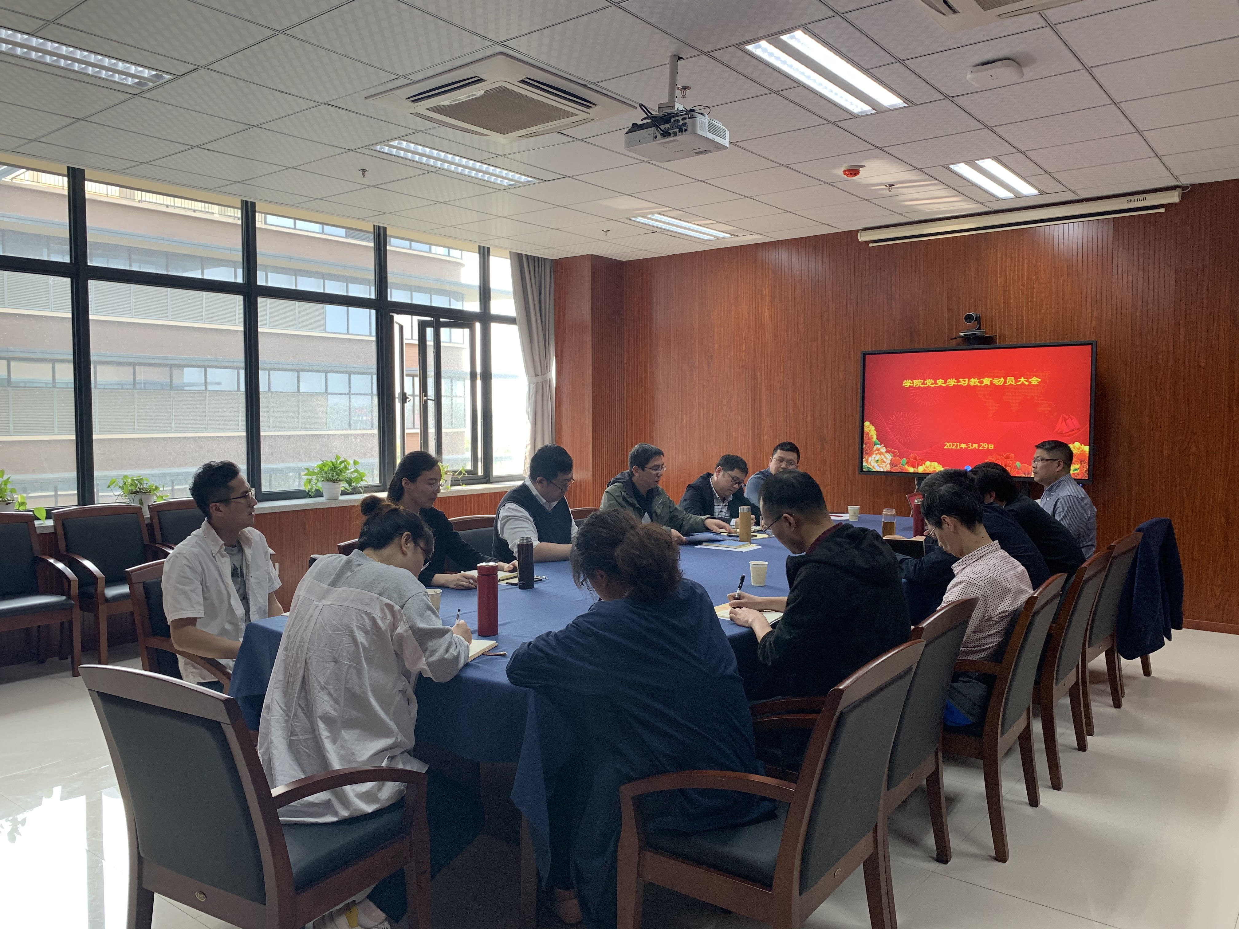 3月29日,国产a片 召开党史学习教育动员会议,安排部署学院党史学习教育工作,学院领导班子和党支部书记参加会议。