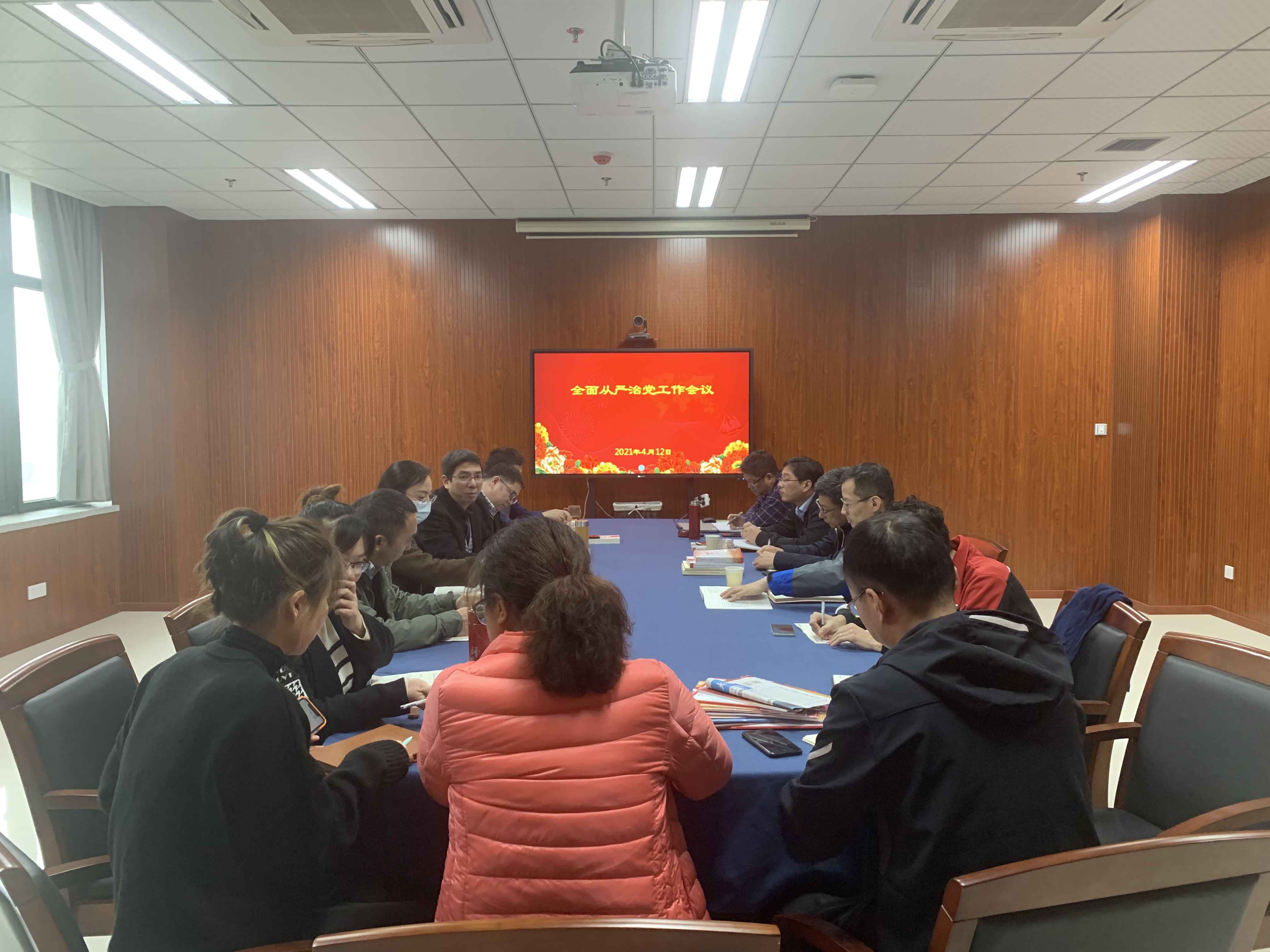 4月12日,国产a片 召开全面从严治党工作会议,深入学习贯彻2021年全省教育系统全面从严治党工作视频会议精神,学院领导班子和党支部书记参加会议会议由党委书记张立明主持。