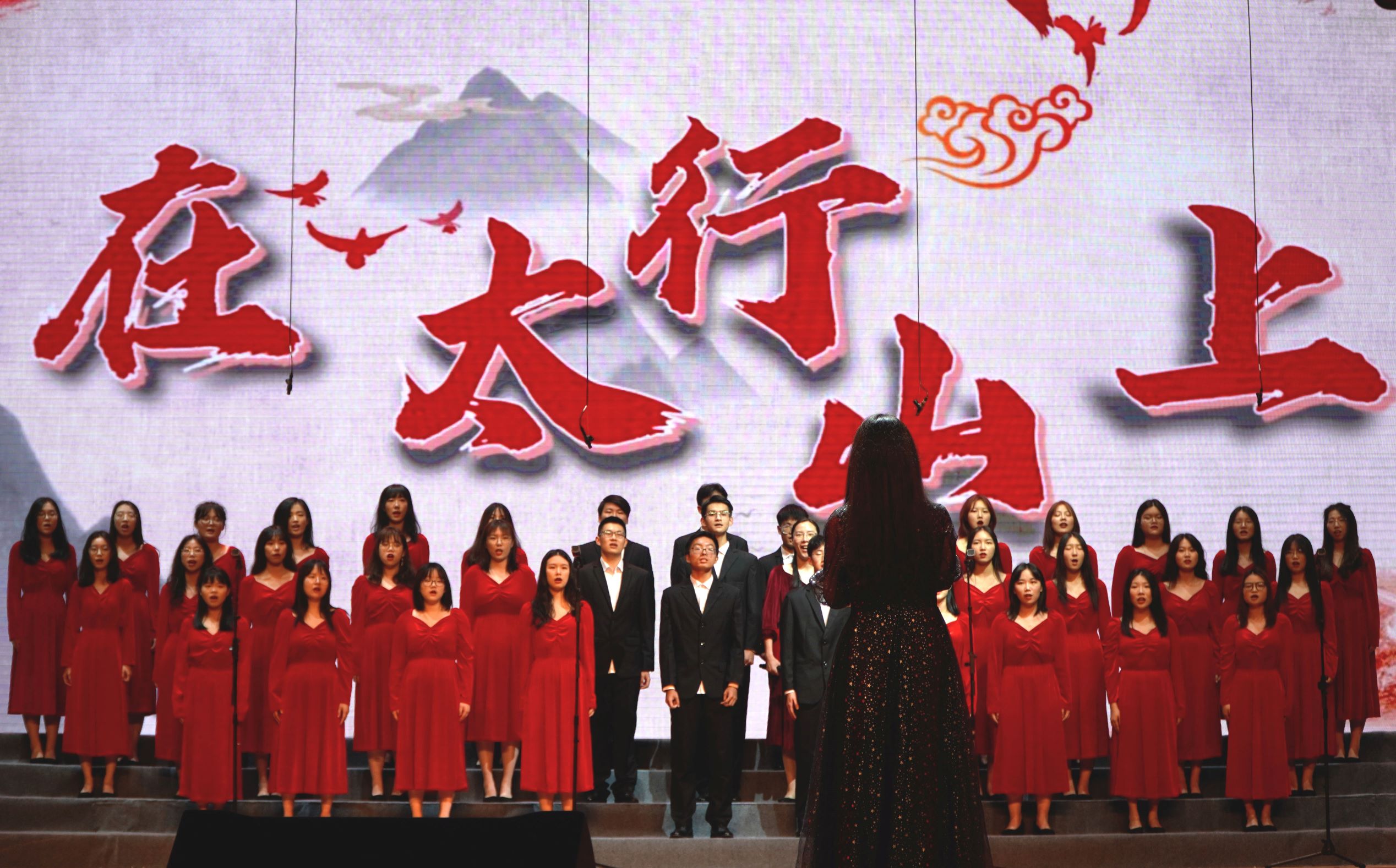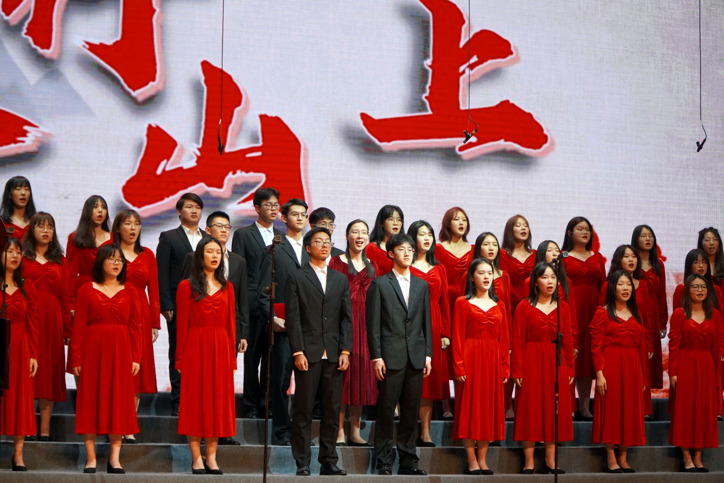 “就让我们一起奋力敲响日寇的丧钟吧,把他们从我们的国土上彻底消灭光!”当这句慷慨激昂的朗诵词结束,全场灯光亮起,生命与环境科学学院代表队开始合唱《在太行山上》这首歌。嘹亮的歌声唤起了慷慨报国的凌云壮志,气势磅礴的合唱博得了现场阵阵热烈的掌声。全体参赛人员用独具匠心的唱法和服饰、动人心弦的歌声和旋律歌颂了中华民族自强不息的伟大精神、阔步向前的豪迈气概,表达了对中国共产党一百周年华诞的热烈祝贺,歌声催人奋进,气势振奋人心!