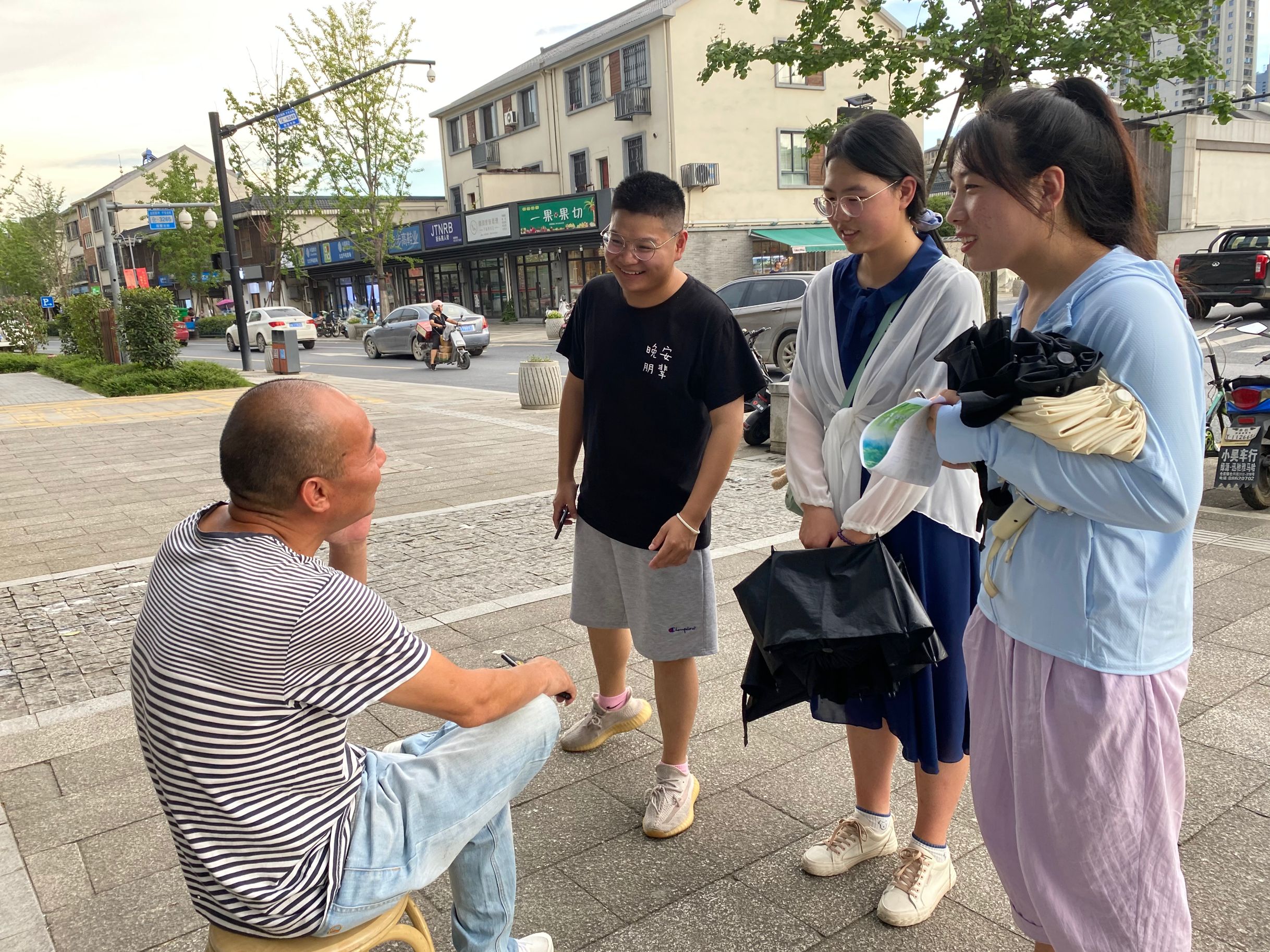 2021年7月7日,国产a片 垃圾分类社会实践小队四位成员前往仓前街道梦想小镇进行有关垃圾分类的采访和调查。