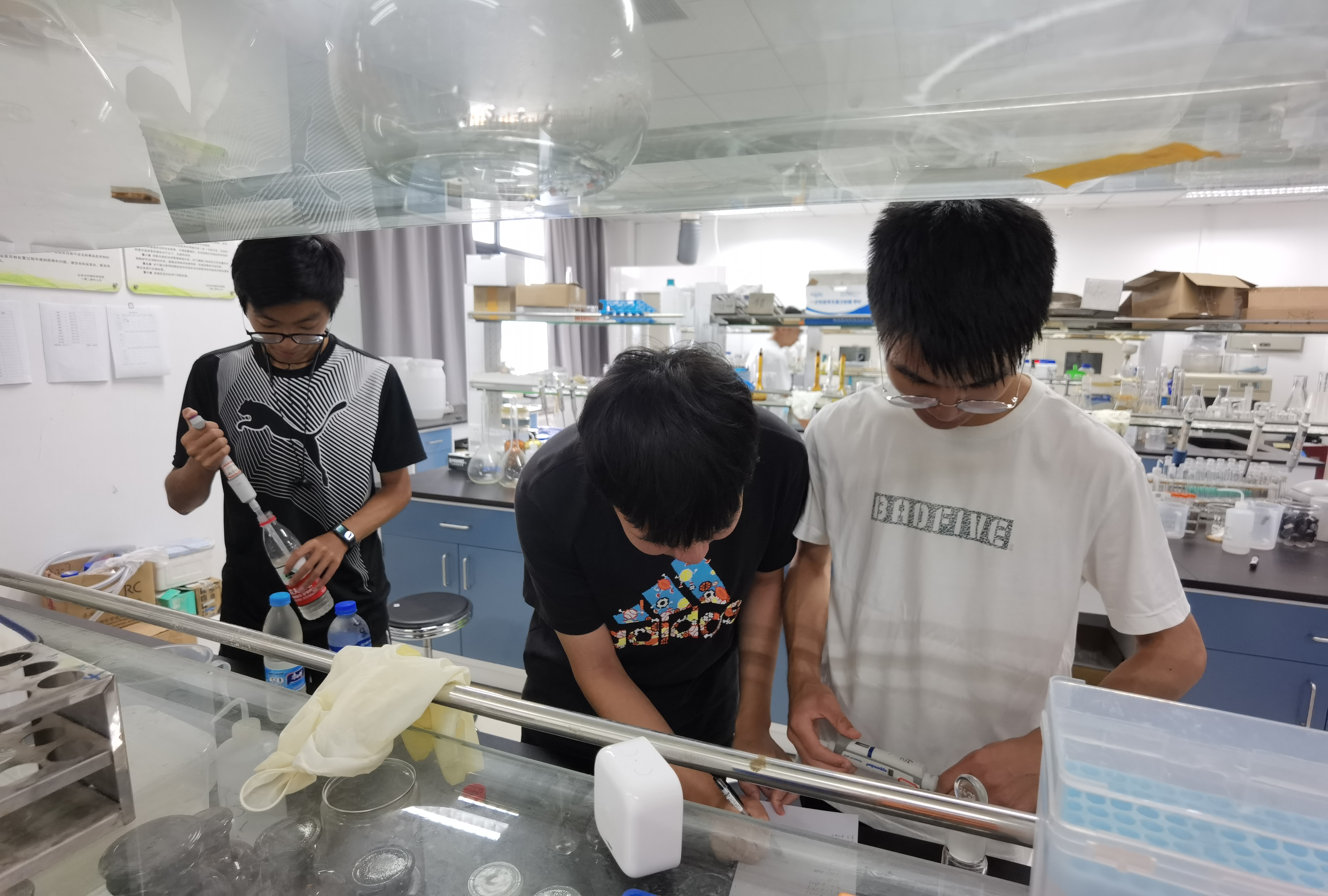 在正式开始进行测三氮活动之前,水质检测小分队的成员们提前进行了思考与选择,确定了所用的最终方案,并向实验室里的学长学姐请教相关注意事项,以确保实验能更为顺畅地进行。