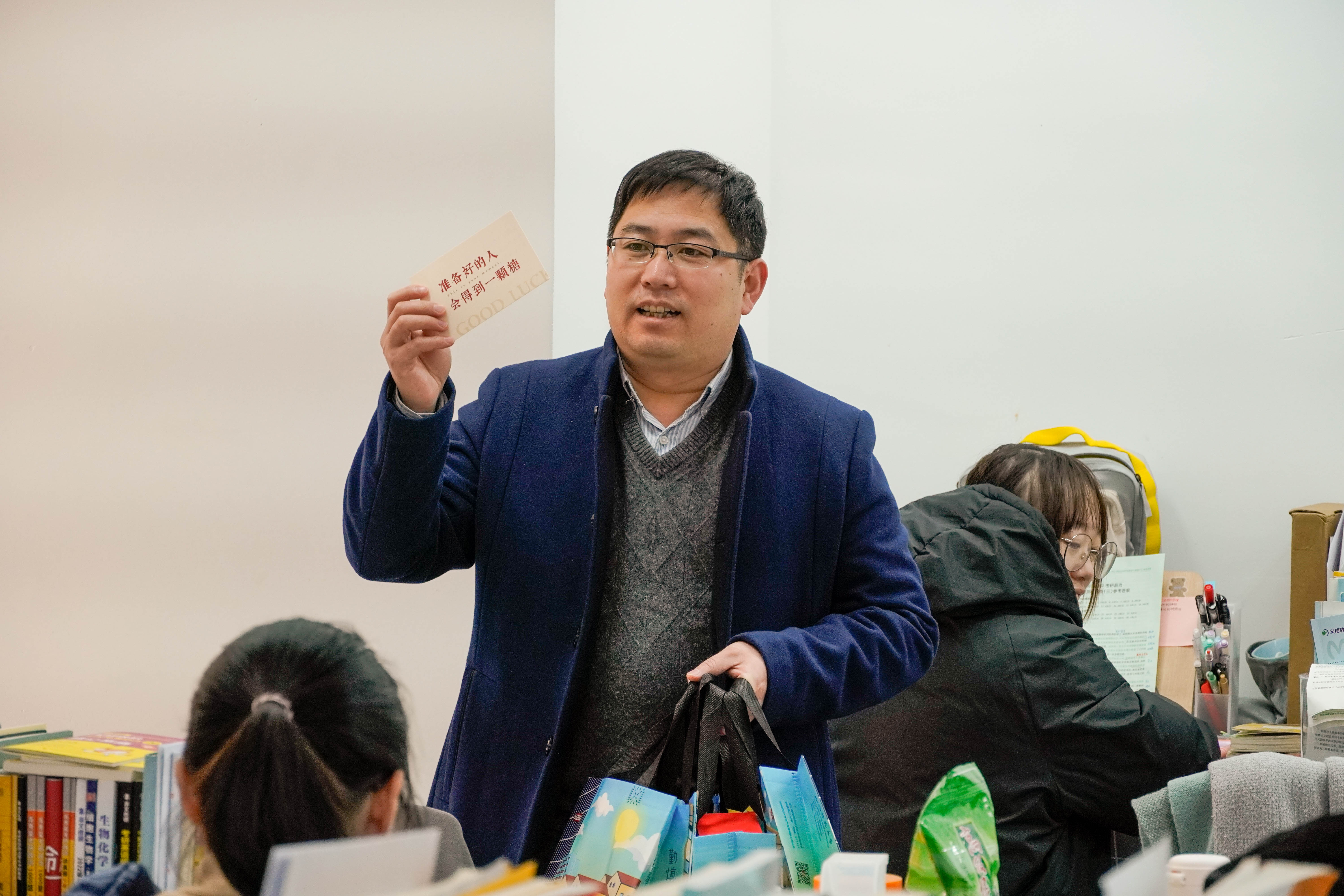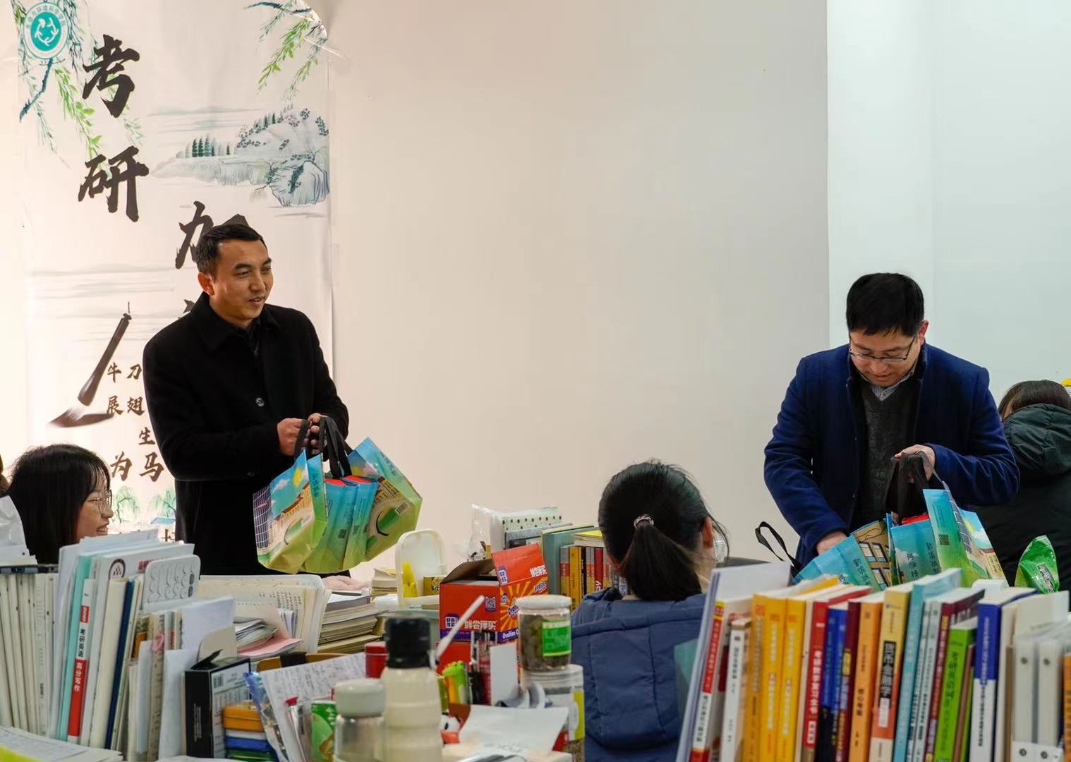 活动中,学院领导们还为同学们送上了精心准备的考研助力礼包,以此表示学院对其的衷心祝愿和殷切期盼。礼包里有保温杯帮助学生驱散寒冷,不仅温暖了考研学子的身体,也给他们带去了源源不断的力量。礼包中还有学弟学妹们亲自写下的祝福,一字一句都是对考研学长学姐们的鼓励与祝愿