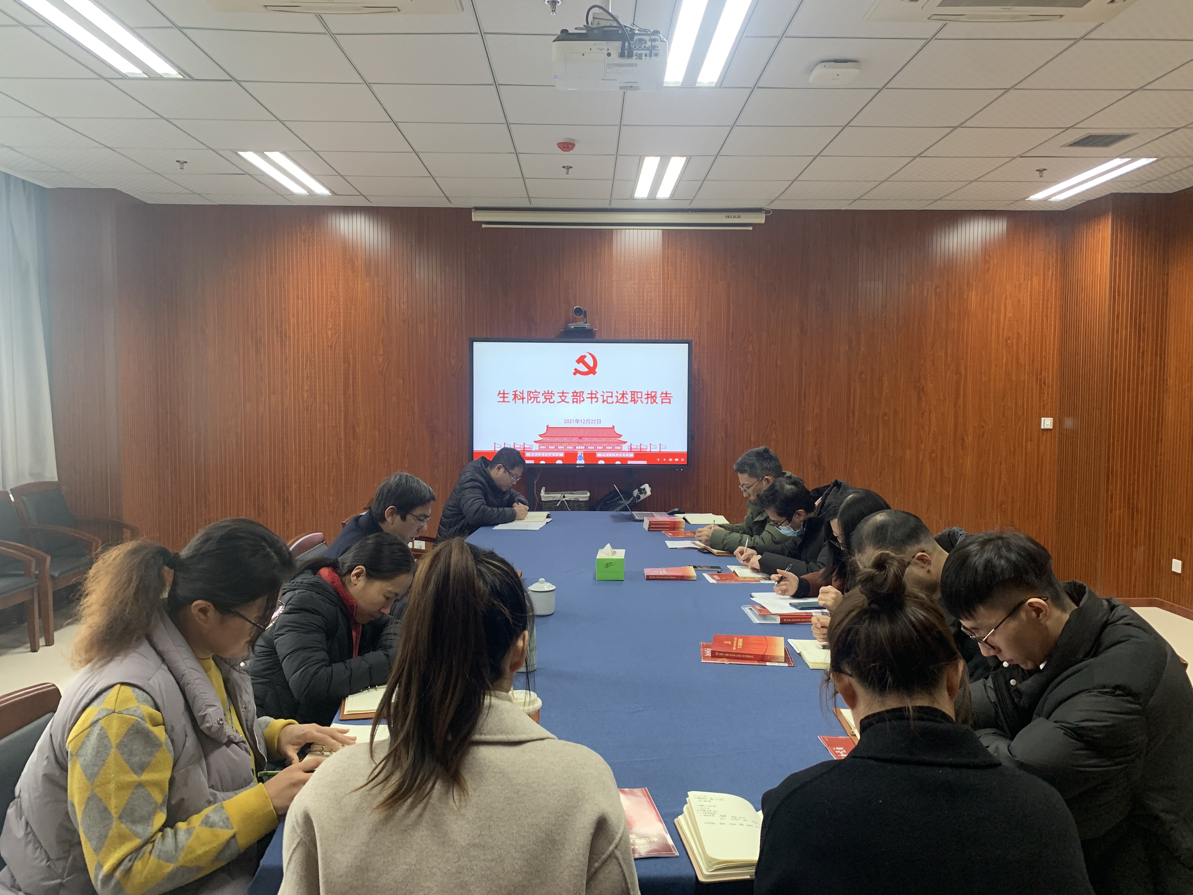 进行党支部书记述职报告会议,参会人员为党委书记张立明、党委副书记王倩、党院办主任、各党支部书记、组织员,学院党委书记张立明主持,各支部书记紧密围绕本支部年度开展工作情况、存在问题及未来期望等方面进行汇报,开展经验分享与学习交流。