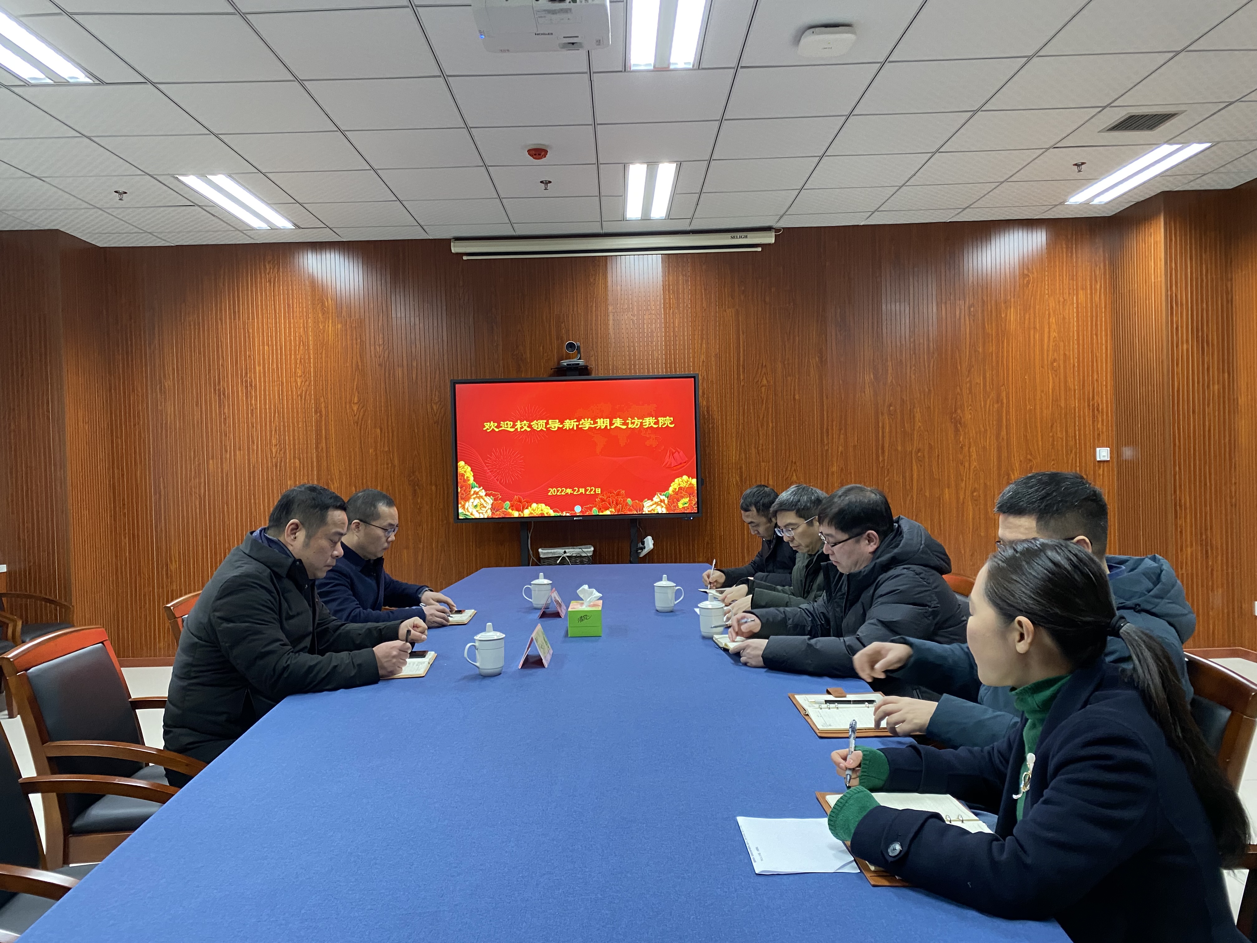 222校党委副书记方亮、校党委委员、组织部长胡绍华来国产a片 进行新学期走访工作,学院全体党政班子领导一起参加座谈。