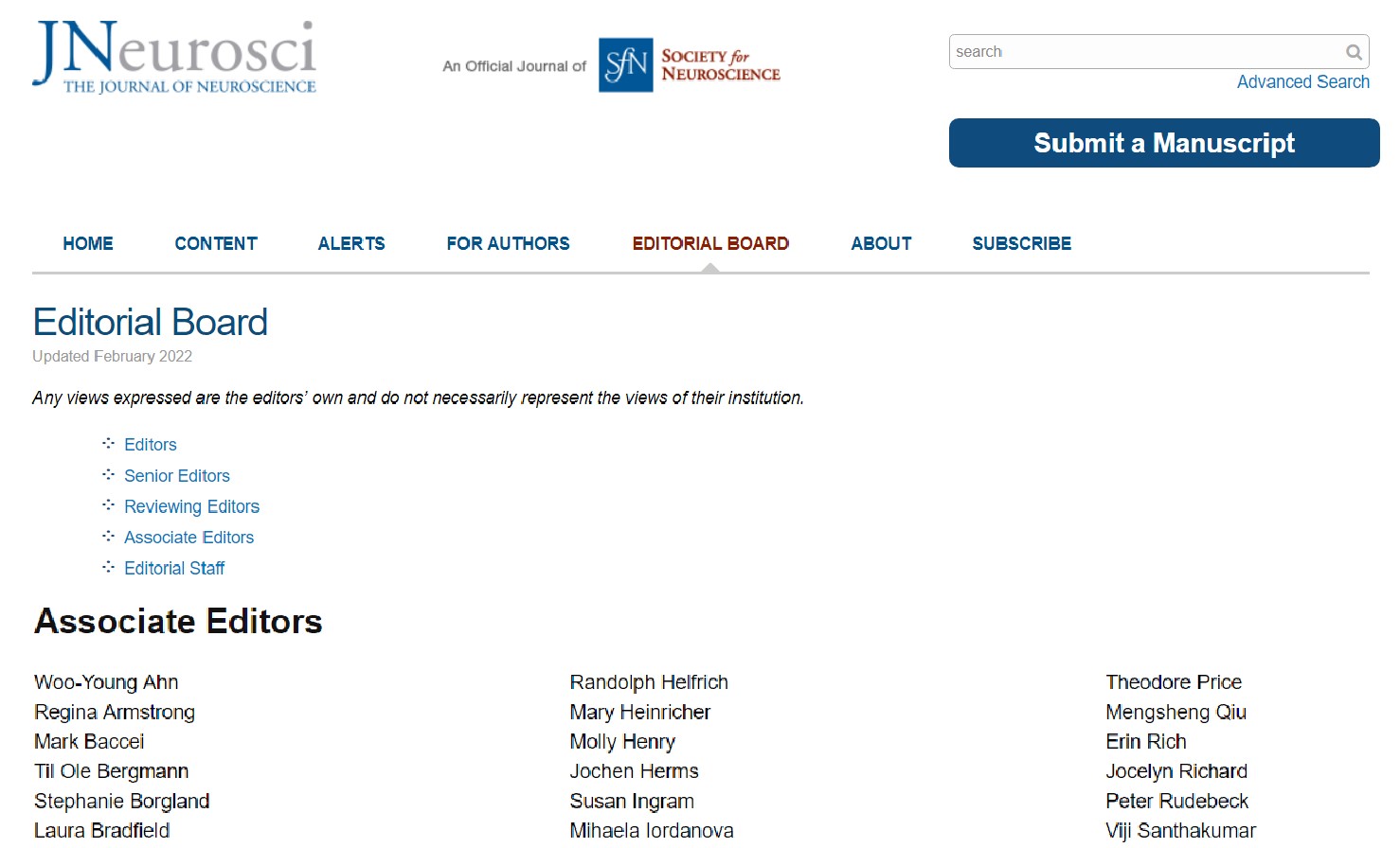 近日,国产a片 邱猛生教授应邀担任国际著名学术期刊Journal of Neuroscience副主编(Associate Editor)。《Journal of Neuroscience》创刊于1981年,是神经科学学会(SfN)旗舰期刊,也是神经科学领域的TOP期刊,属于中科院JCR期刊分区中一区期刊,主要发表神经科学领域的前沿研究,包括行为/认知、细胞/分子、发展/可塑性/修复、疾病的神经生物学研究等。邱教授此次任职Journal of Neuroscience杂志副主编,成为该杂志1981年创刊以来担任副主编中为数不多的中国大陆学者。