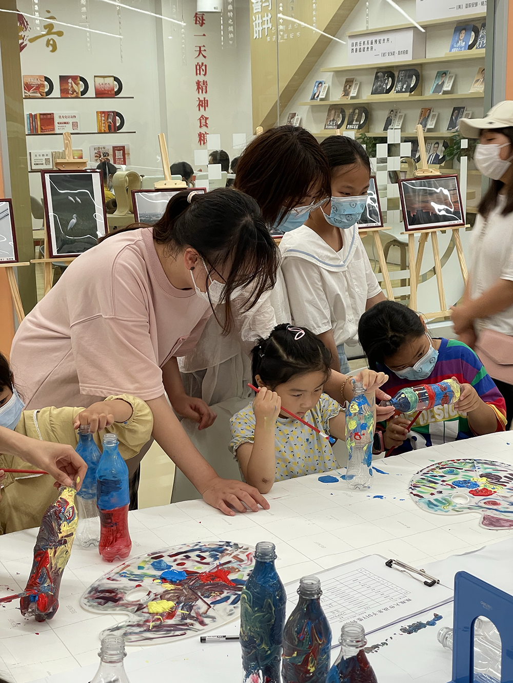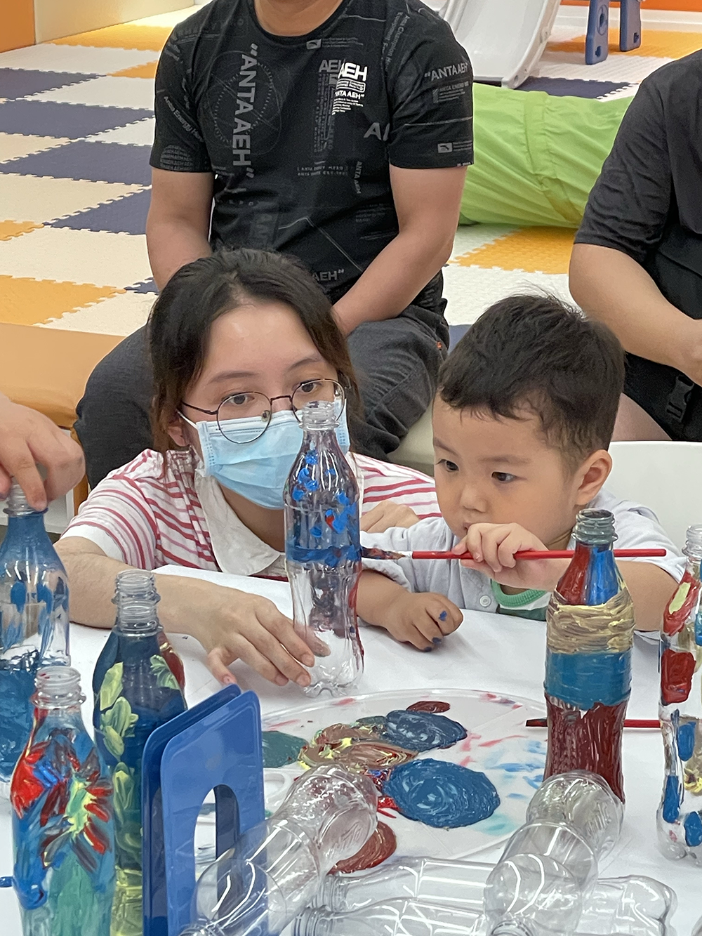 现场“瓶瓶大变身”可乐瓶创意DIY制作环节,国产a片 派出志愿者团队,化身为“小老师”带领现场小朋友们共同对废弃可乐瓶进行创意加工,打造各式各样的“艺术品”,在实践中传播环保艺术理念。
