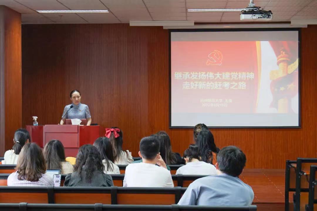 为加强毕业生理想信念教育,让毕业生党员深刻认识到自身肩负的使命和责任,2022年6月16日下午,在慎园15号楼309报告厅,生科院党委副书记王倩老师以“传承发扬伟大建党精神,走好新的赶考之路”为题,为全体2022届毕业生党员们讲授了一堂生动的党课。